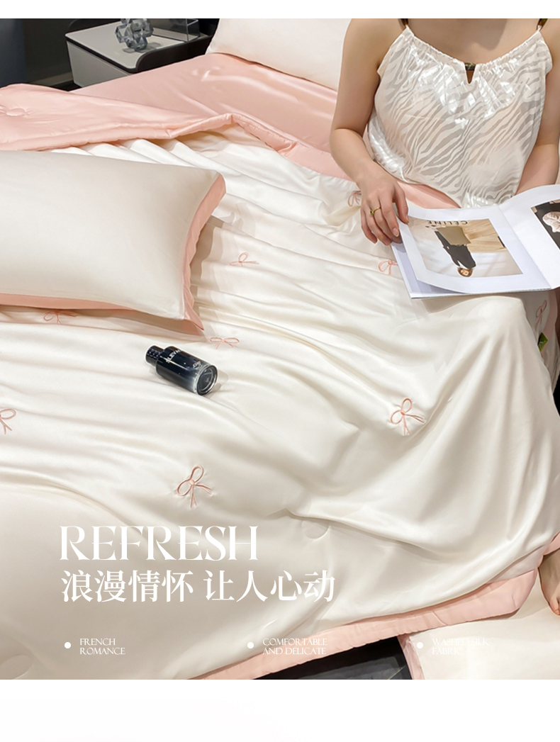 当前位置: 91家纺网 > 商品网购 > 床品套件 > 四件套 > 夏被四件套 > 益多眠 2026新款花朵夏被四件套 蝴蝶结奶白粉