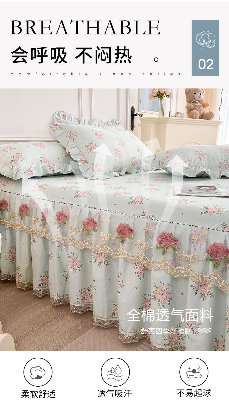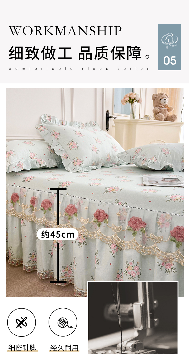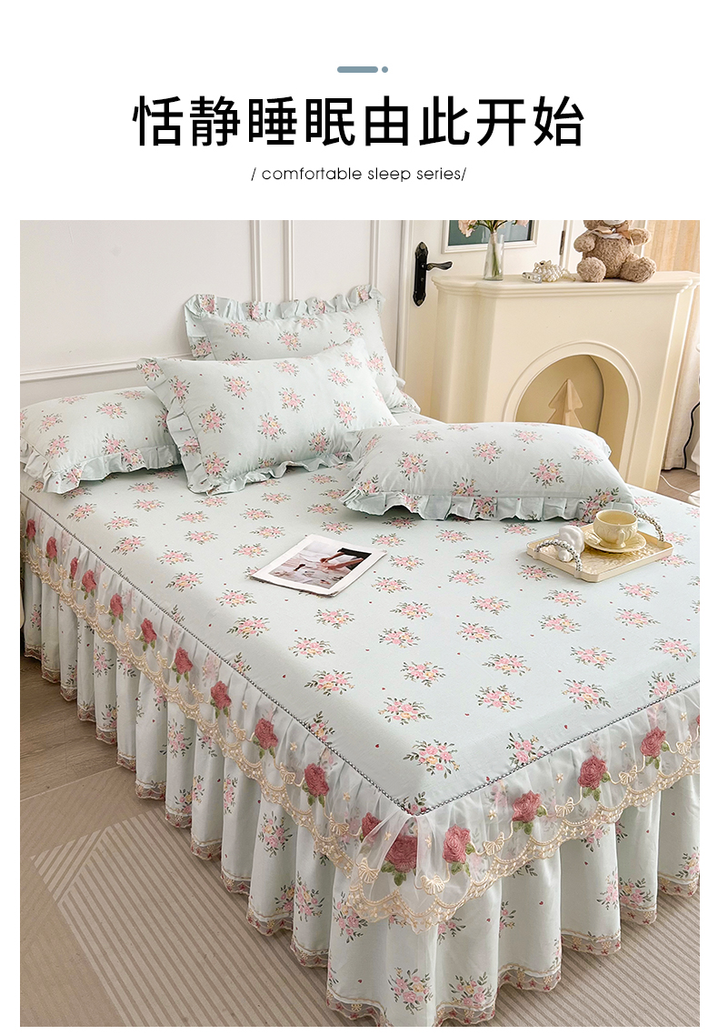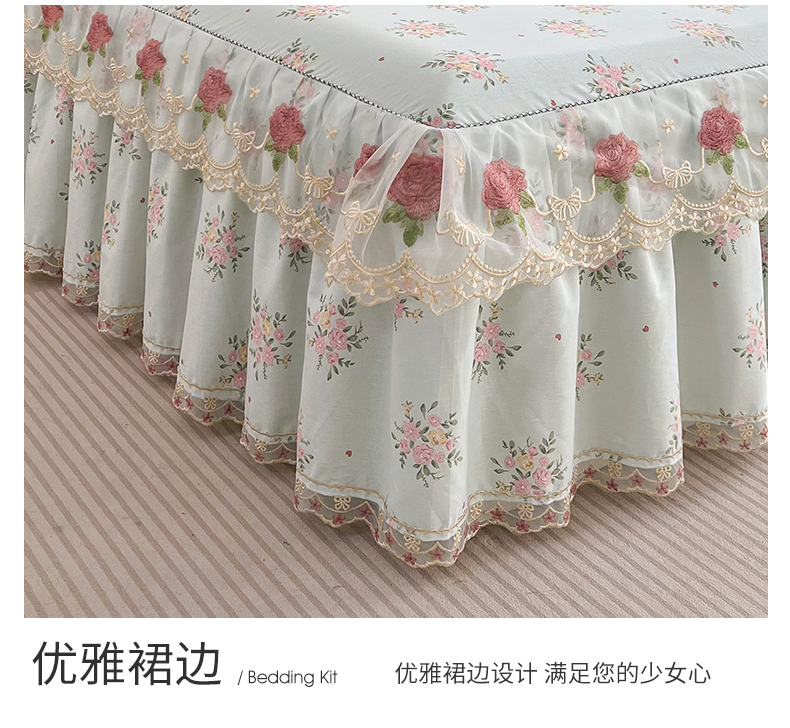 十个点 2025新款全棉纯棉蕾丝花边床裙 嫣语-兰