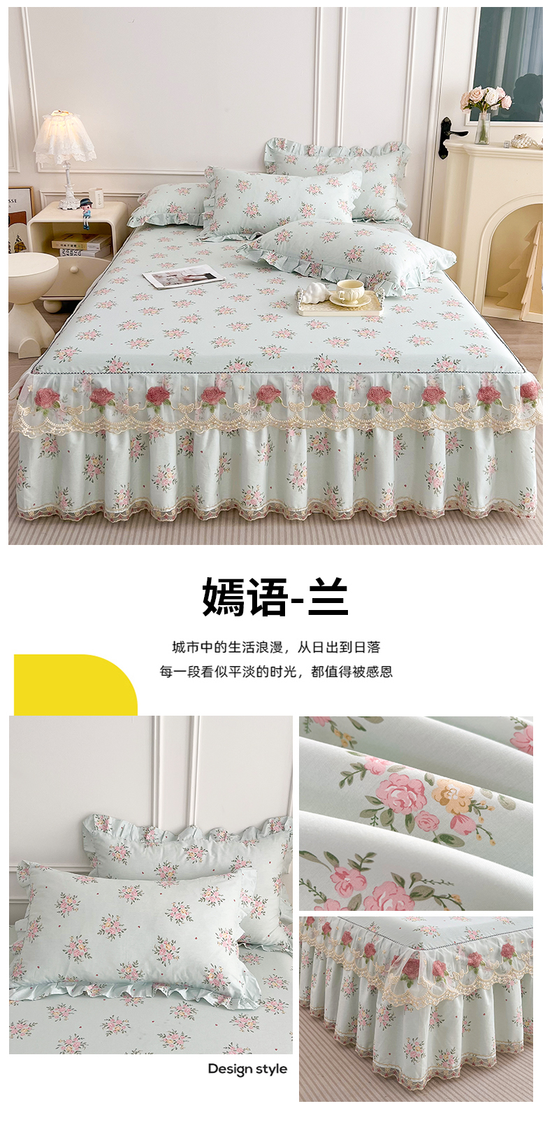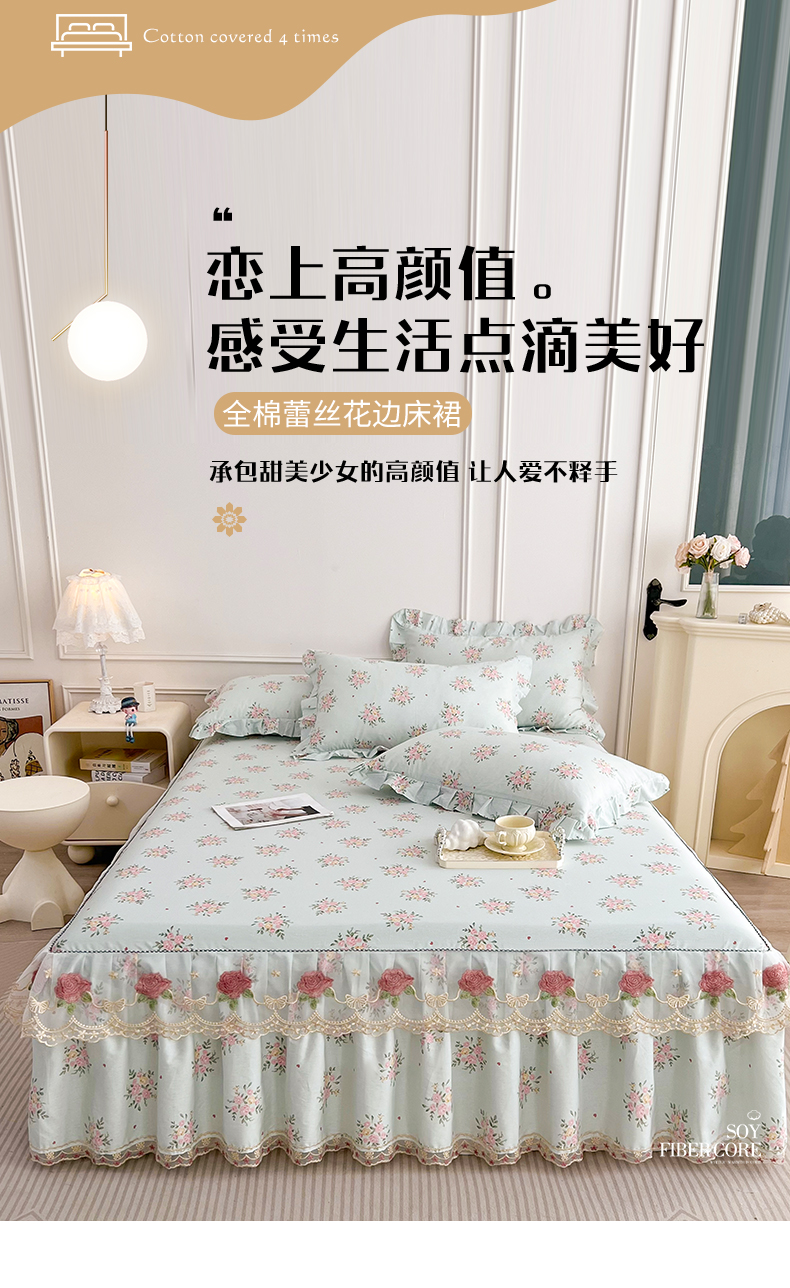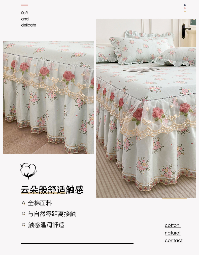 十个点 2025新款全棉纯棉蕾丝花边床裙 嫣语-兰