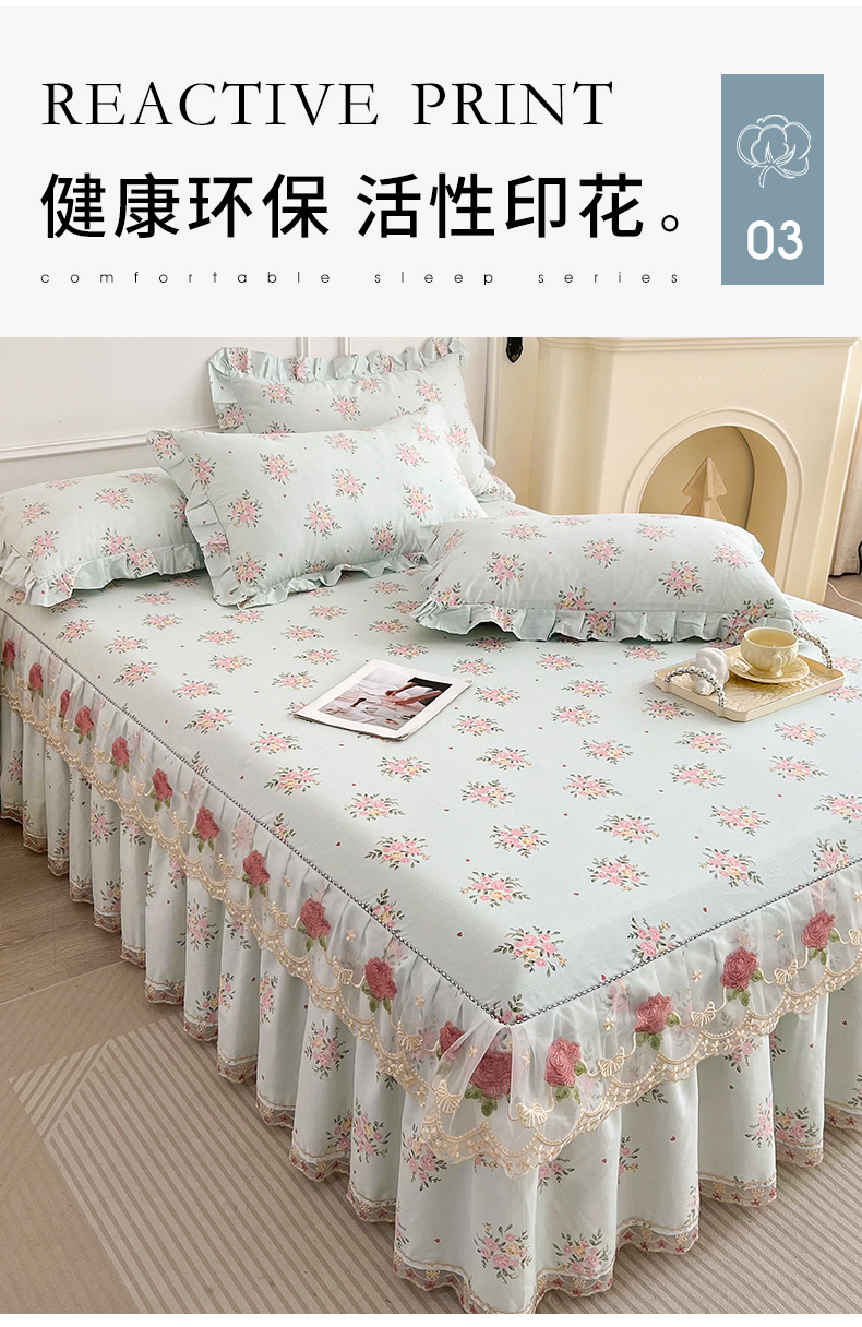 • 91家纺网 家纺一手货源 找家纺  十个点 2025新款全棉纯棉蕾丝花边床裙 嫣语-兰