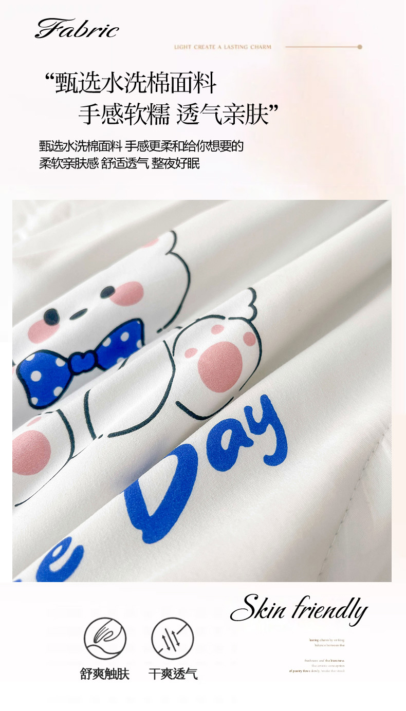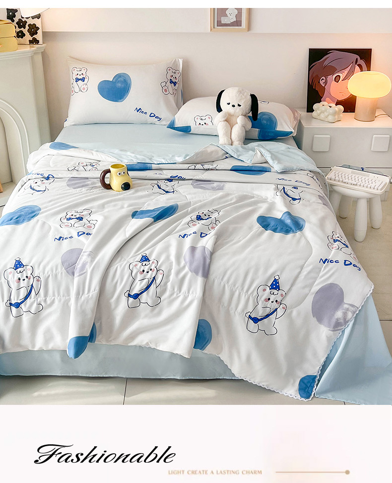 倾慕家纺 2025新款A类小清新小花边水洗棉夏被系列 北极熊
