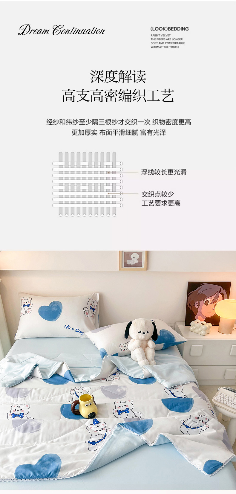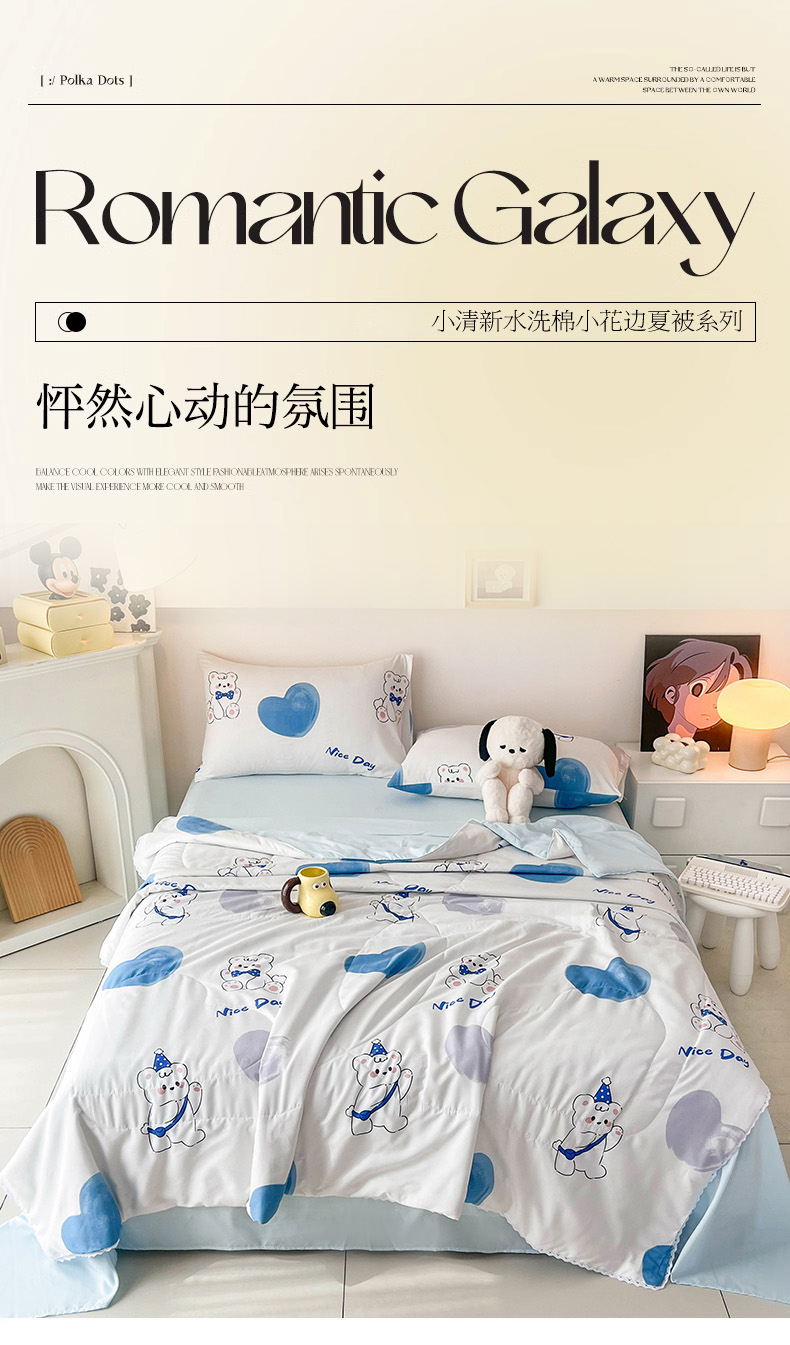 商品名称:倾慕家纺 2025新款A类小清新小花边水洗棉夏被系列 北极熊