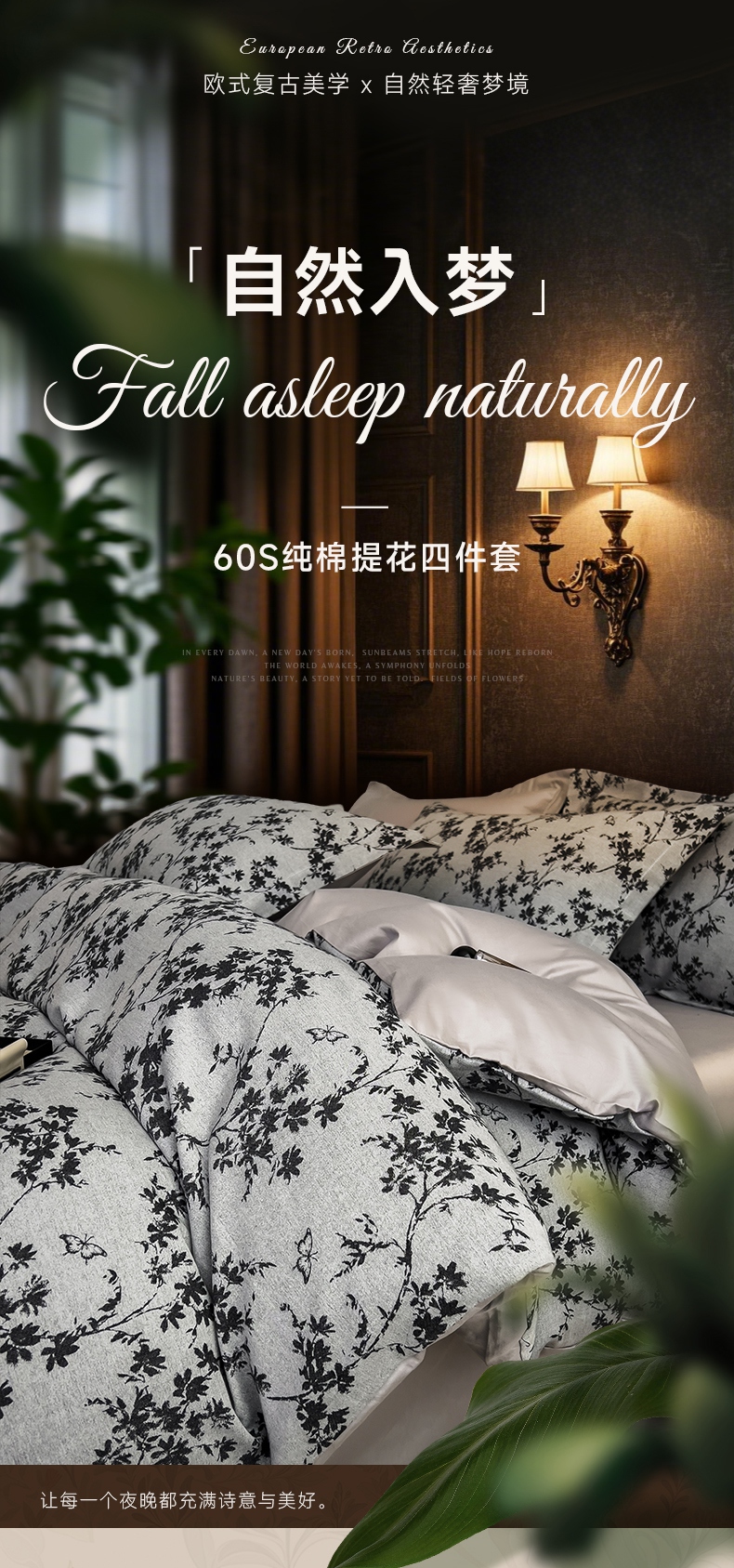 当前位置: 91家纺网 > 商品网购 > 床品套件 > 四件套 > 全棉普通四件套 > 倾慕家纺 2025新款60S提花全棉四件套 爱玲说深灰