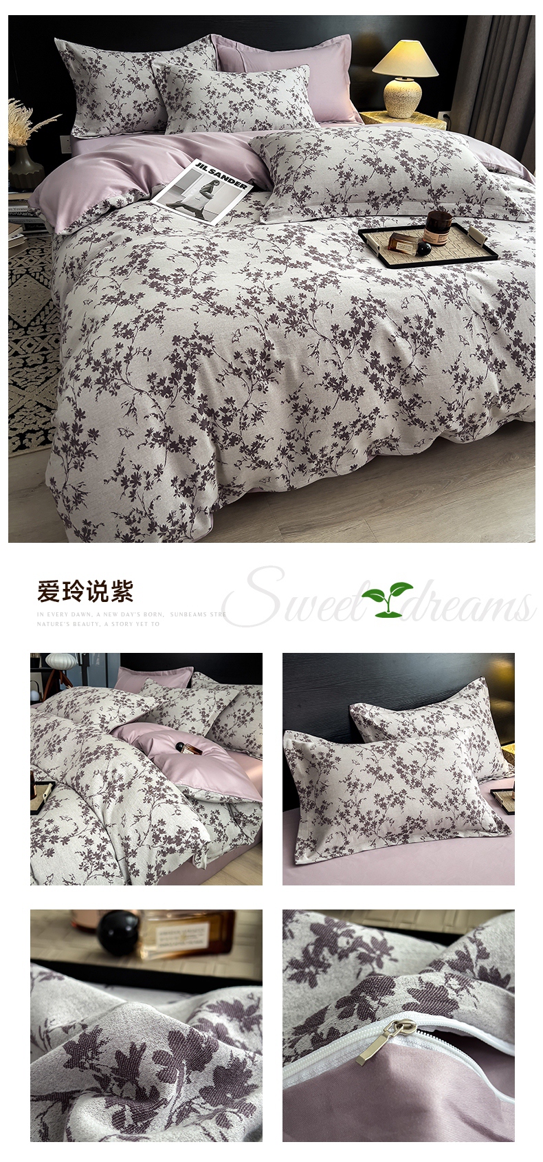 当前位置: 91家纺网 > 商品网购 > 床品套件 > 四件套 > 全棉普通四件套 > 倾慕家纺 2025新款60S提花全棉四件套 摩登森林紫灰