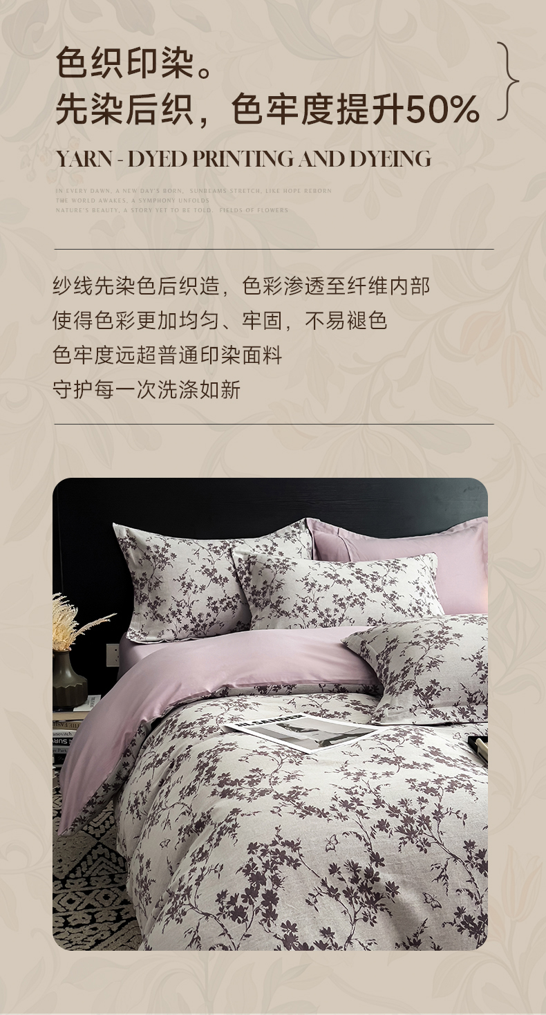 (总)倾慕 2025新款数码纯棉加厚磨毛产品系列四件套,蝶舞粉,蕾丝花粉,丽思黄,丽思兰,绿茵,梦幻屋紫,清风来咖,晚笙粉,云嘉粉,芷兰粉