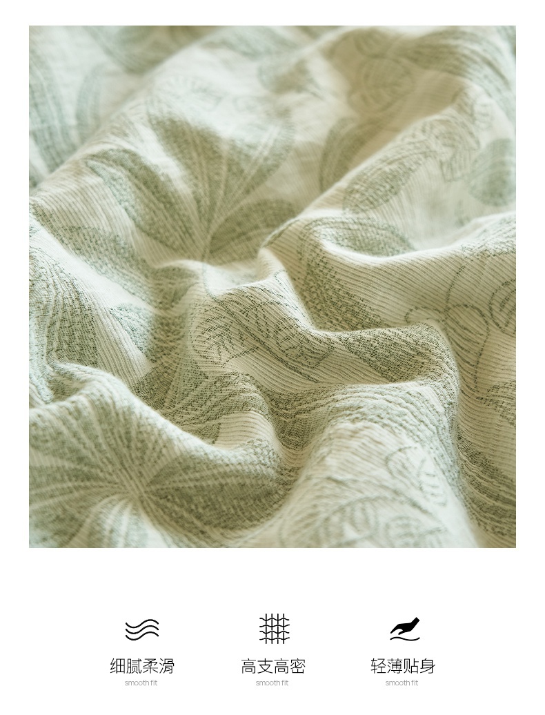 当前位置: 91家纺网 > 商品网购 > 床品套件 > 四件套 > 夏被四件套 > 2025新款全棉水洗棉三层提花大豆夏被四件套 提花-叶韵绿