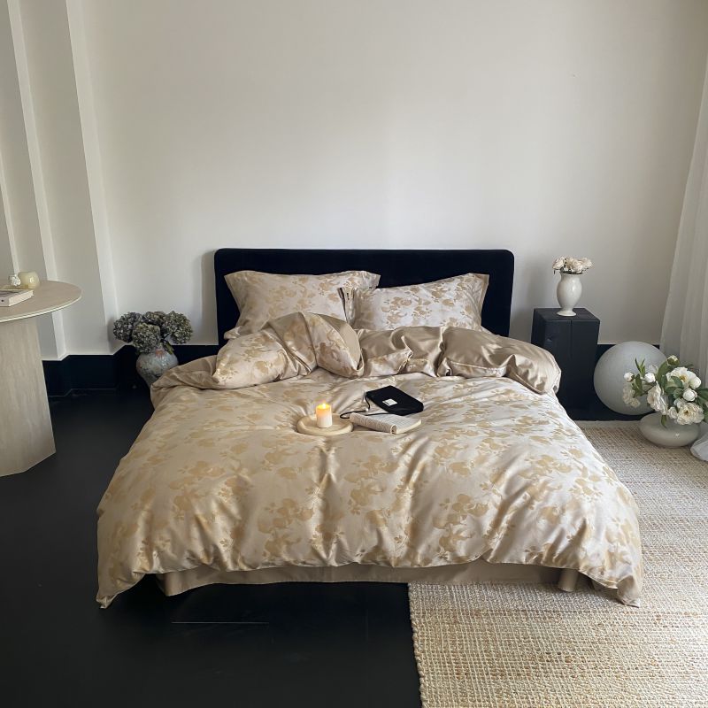 玉宇阁2025新款100S色织天丝棉大提花四件套-椿庭岚 椿庭岚流光-缃叶黄