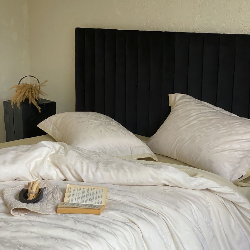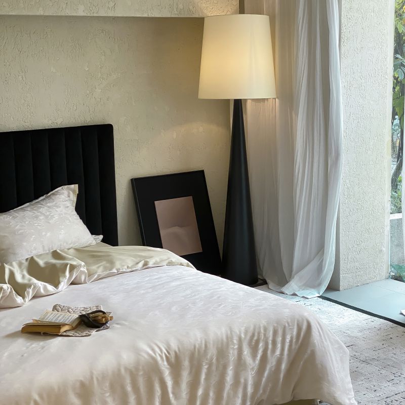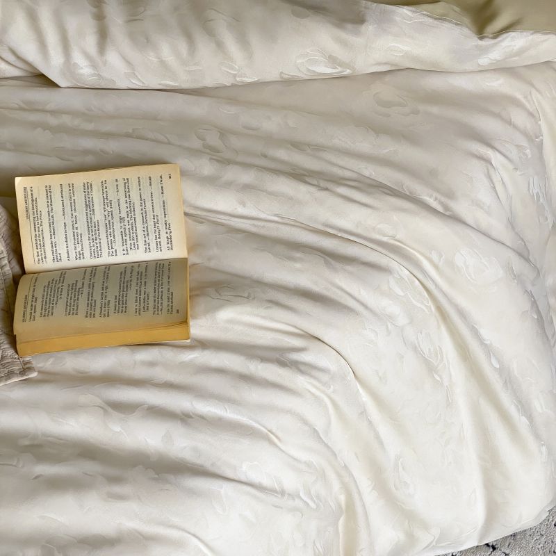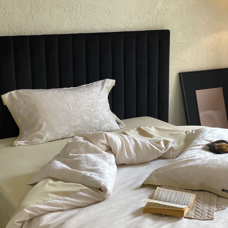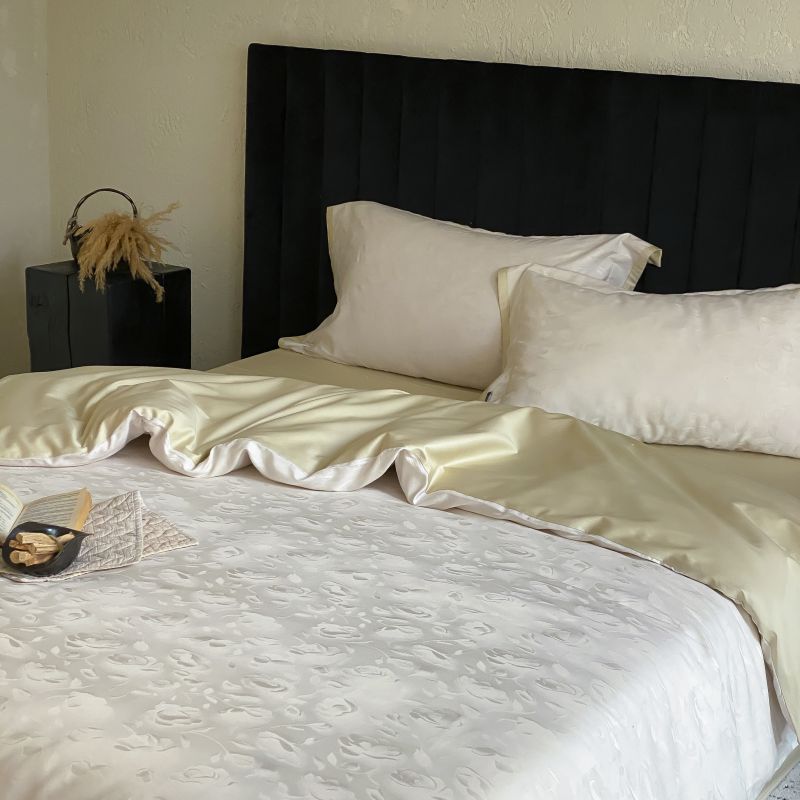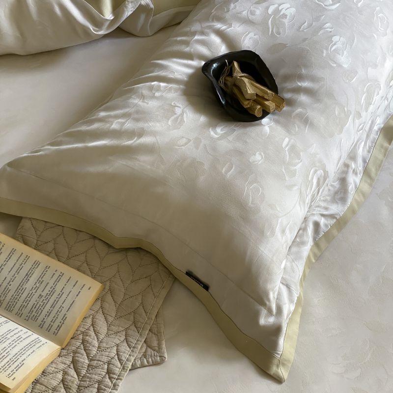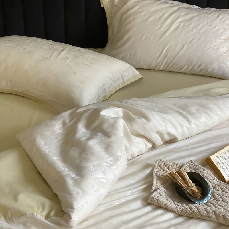 商品名称:玉宇阁2025新款100S色织天丝棉大提花四件套-山茶漫漫 山茶漫漫薄雾清晨