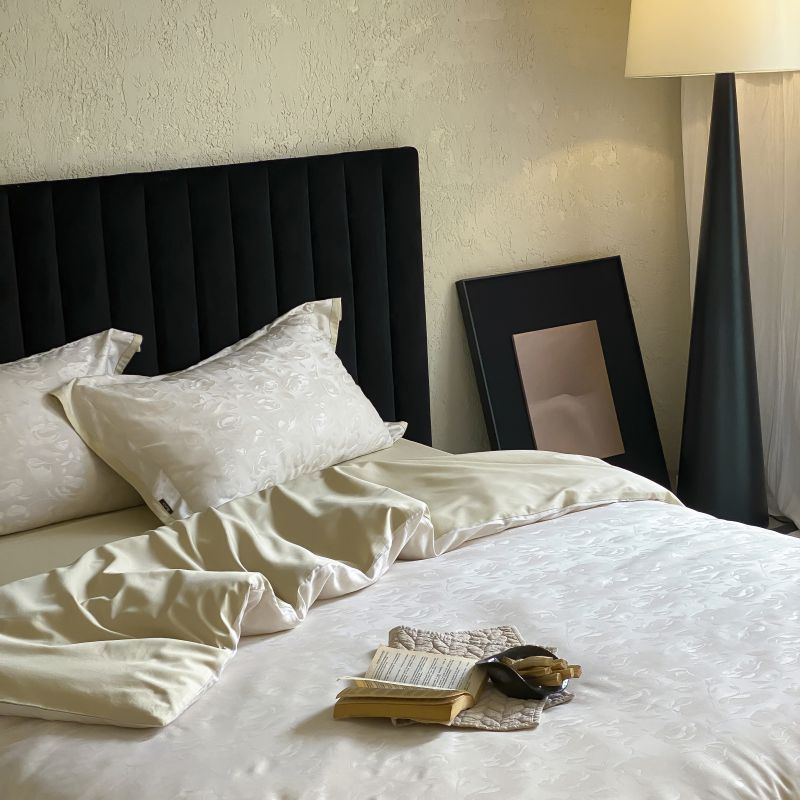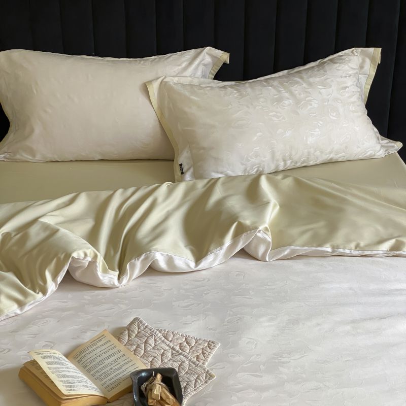 (总)玉宇阁家居 2023新款春夏60支兰精天丝拼色四件套,都市灰香槟,海盐松露,芥末黄香槟,裸粉香槟,茉莉奶绿,浅灰鹅黄,若草乳白