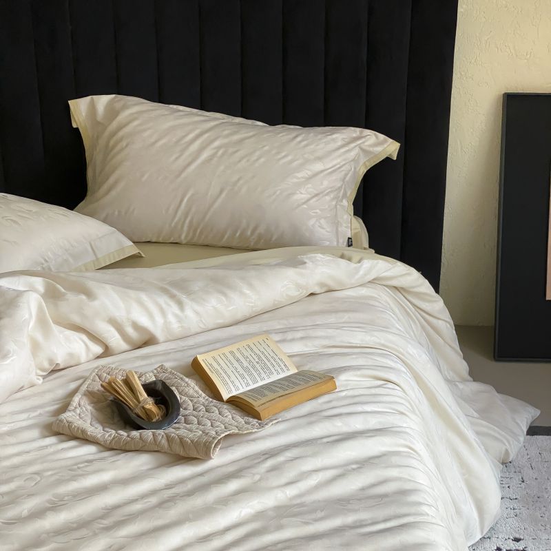 玉宇阁2025新款100S色织天丝棉大提花四件套-山茶漫漫 山茶漫漫薄雾清晨