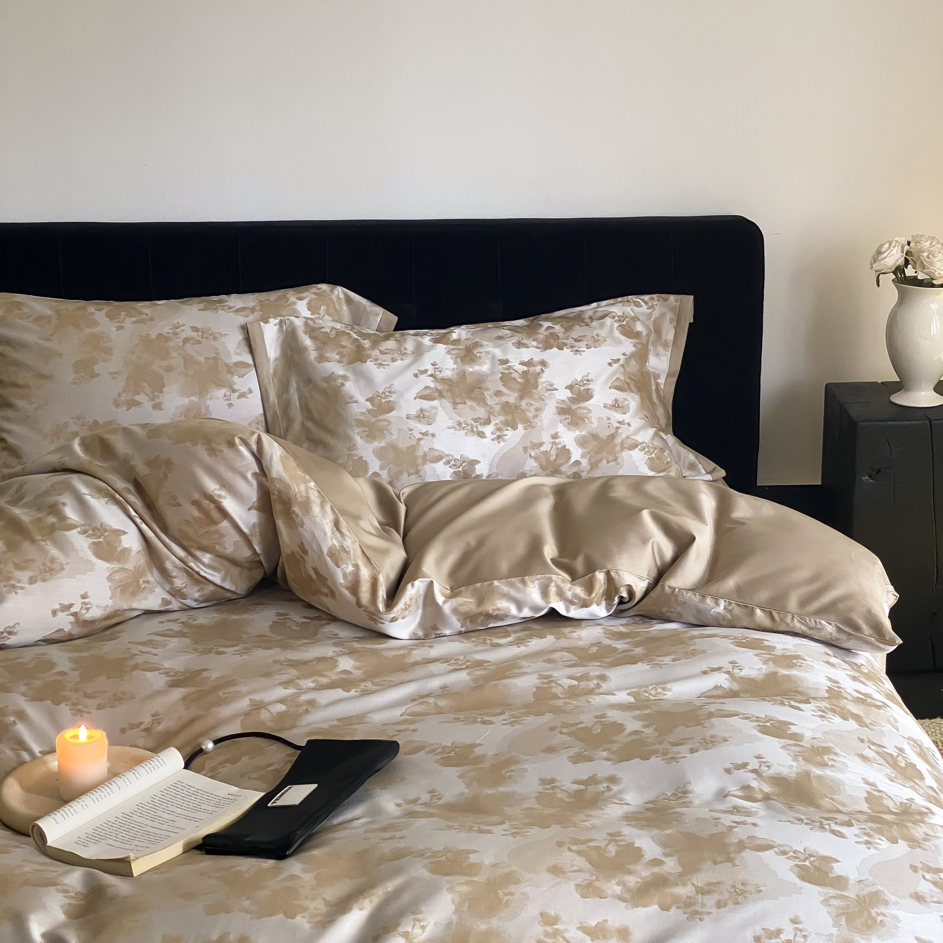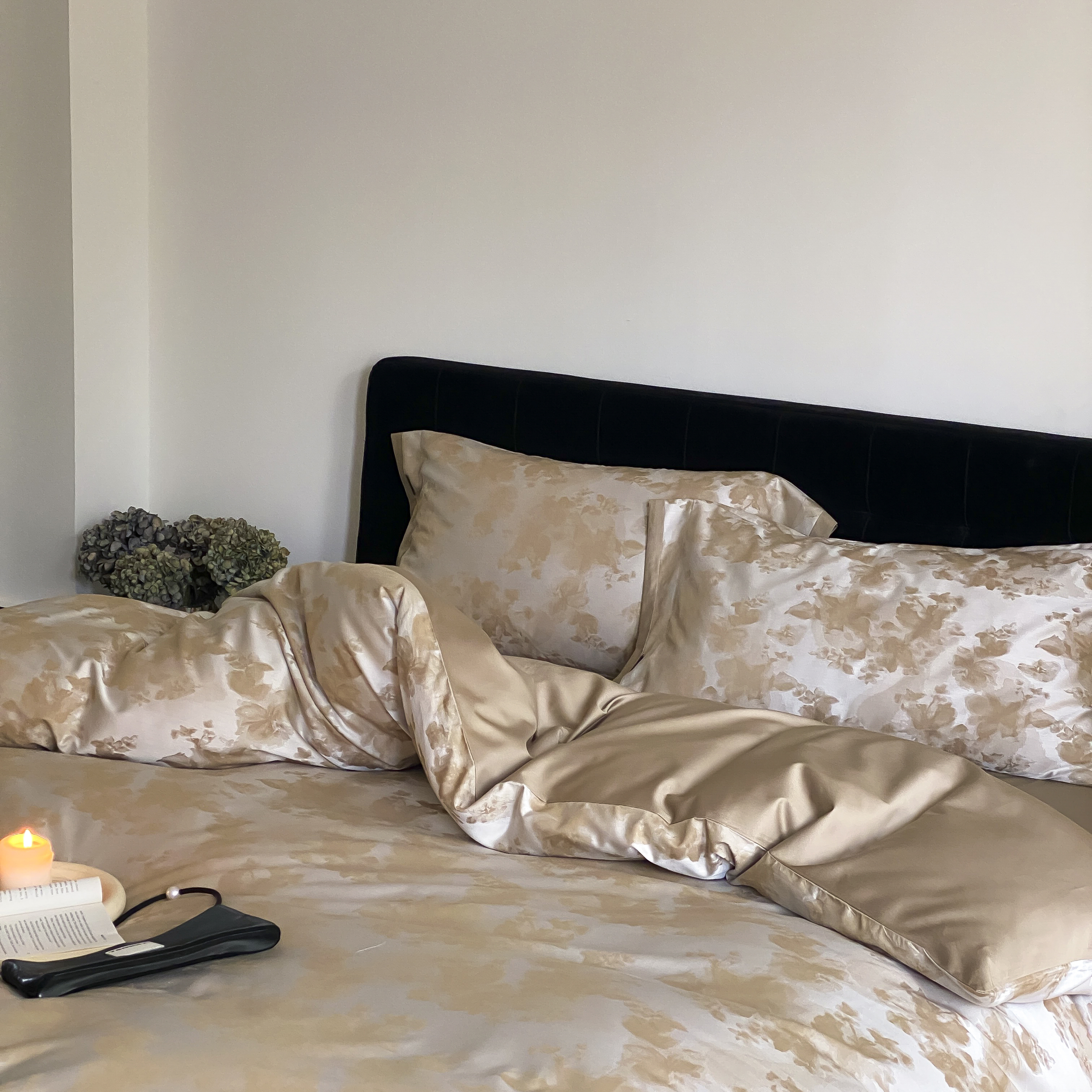 (总)玉宇阁家居 2023新款春夏60支兰精天丝拼色四件套,都市灰香槟,海盐松露,芥末黄香槟,裸粉香槟,茉莉奶绿,浅灰鹅黄,若草乳白
