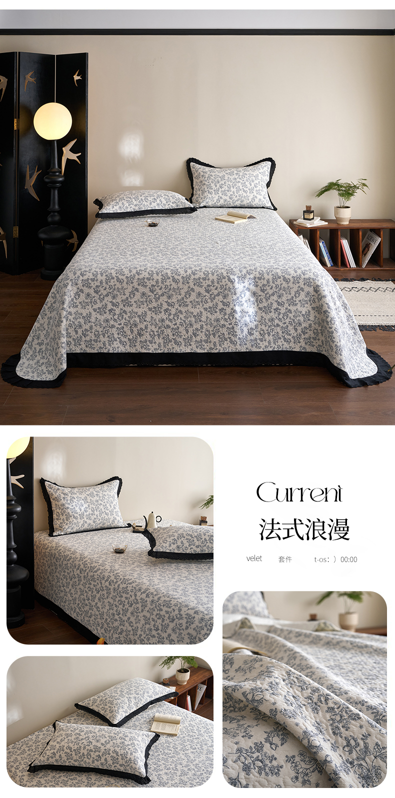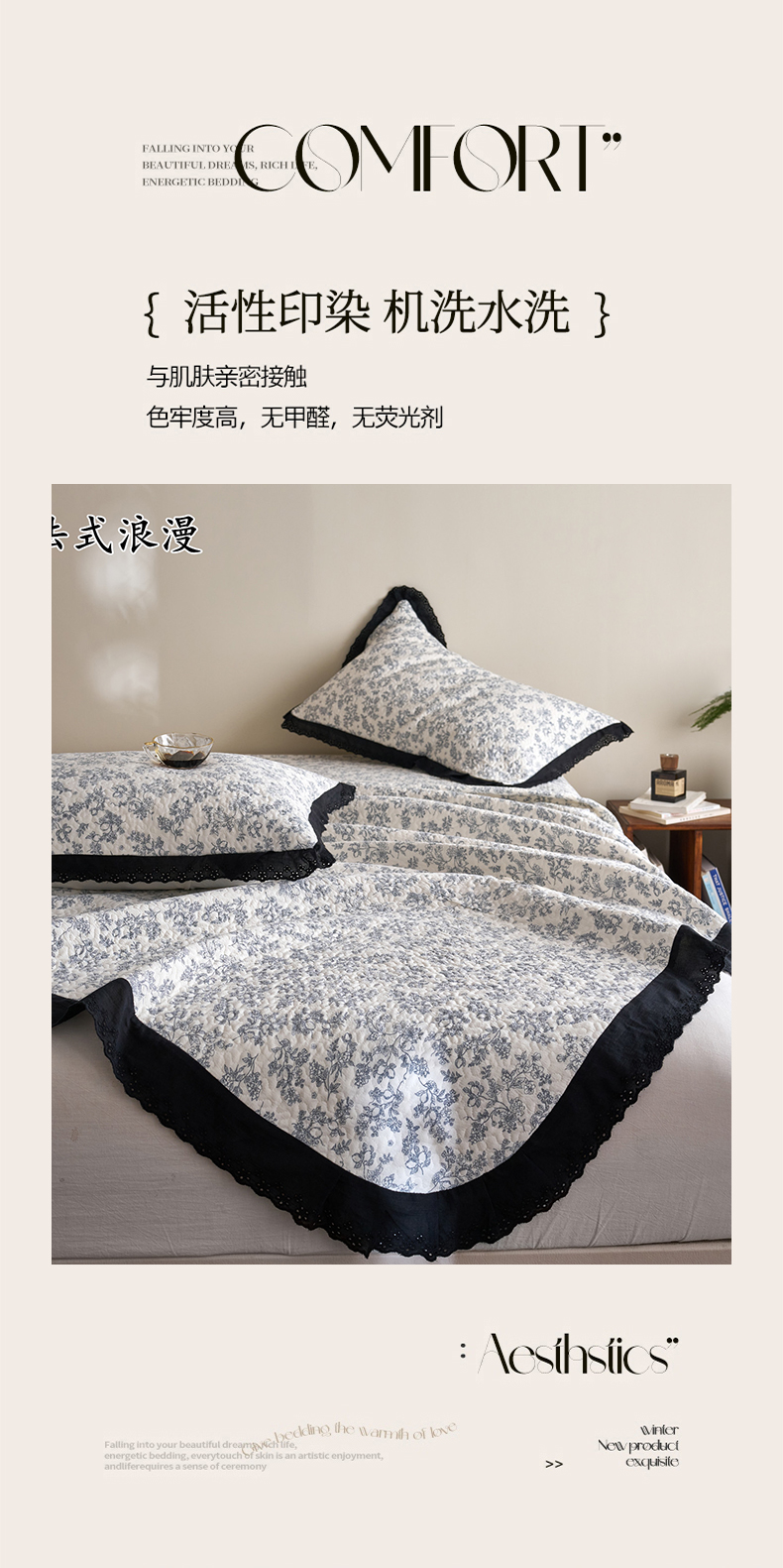 商品名称:漫仙阁家纺 2025新款热卖法式花边款加厚床盖床盖三件套 法式浪漫