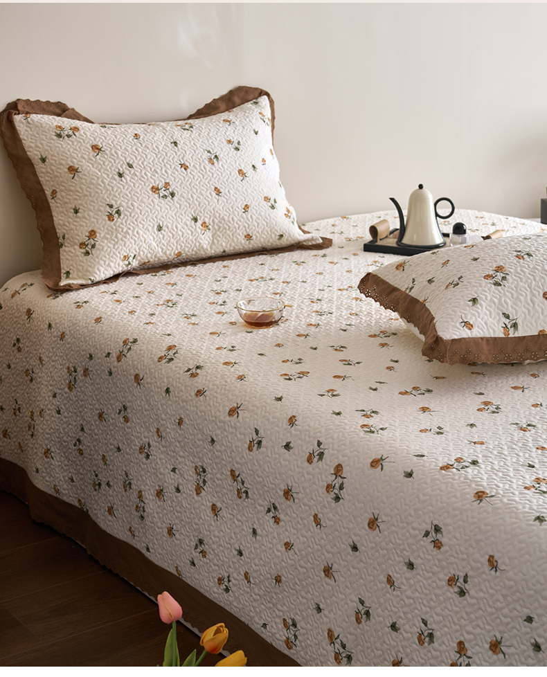漫仙阁家纺 2025新款热卖法式花边款加厚床盖床盖三件套 曼塔玫瑰