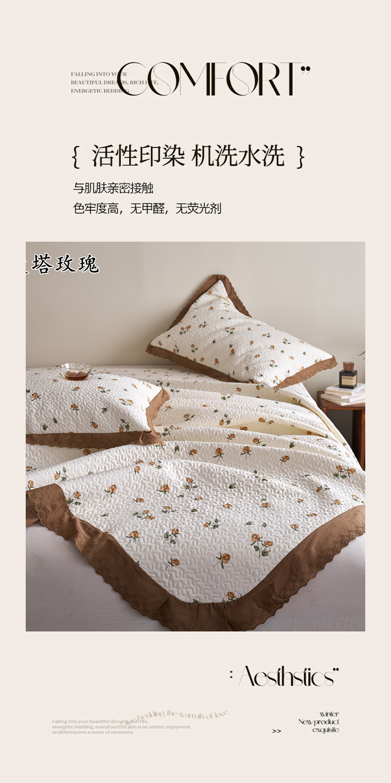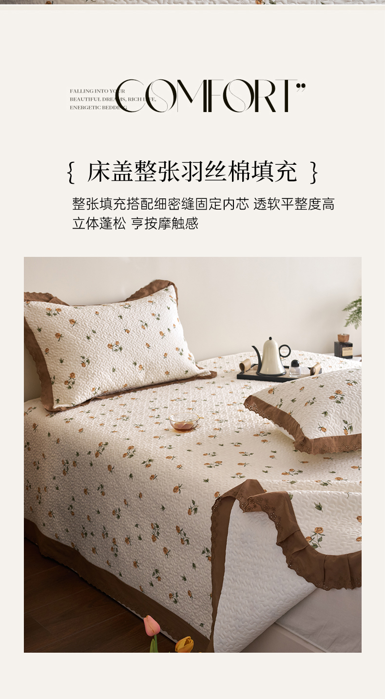 商品名称:漫仙阁家纺 2025新款热卖法式花边款加厚床盖床盖三件套 曼塔玫瑰