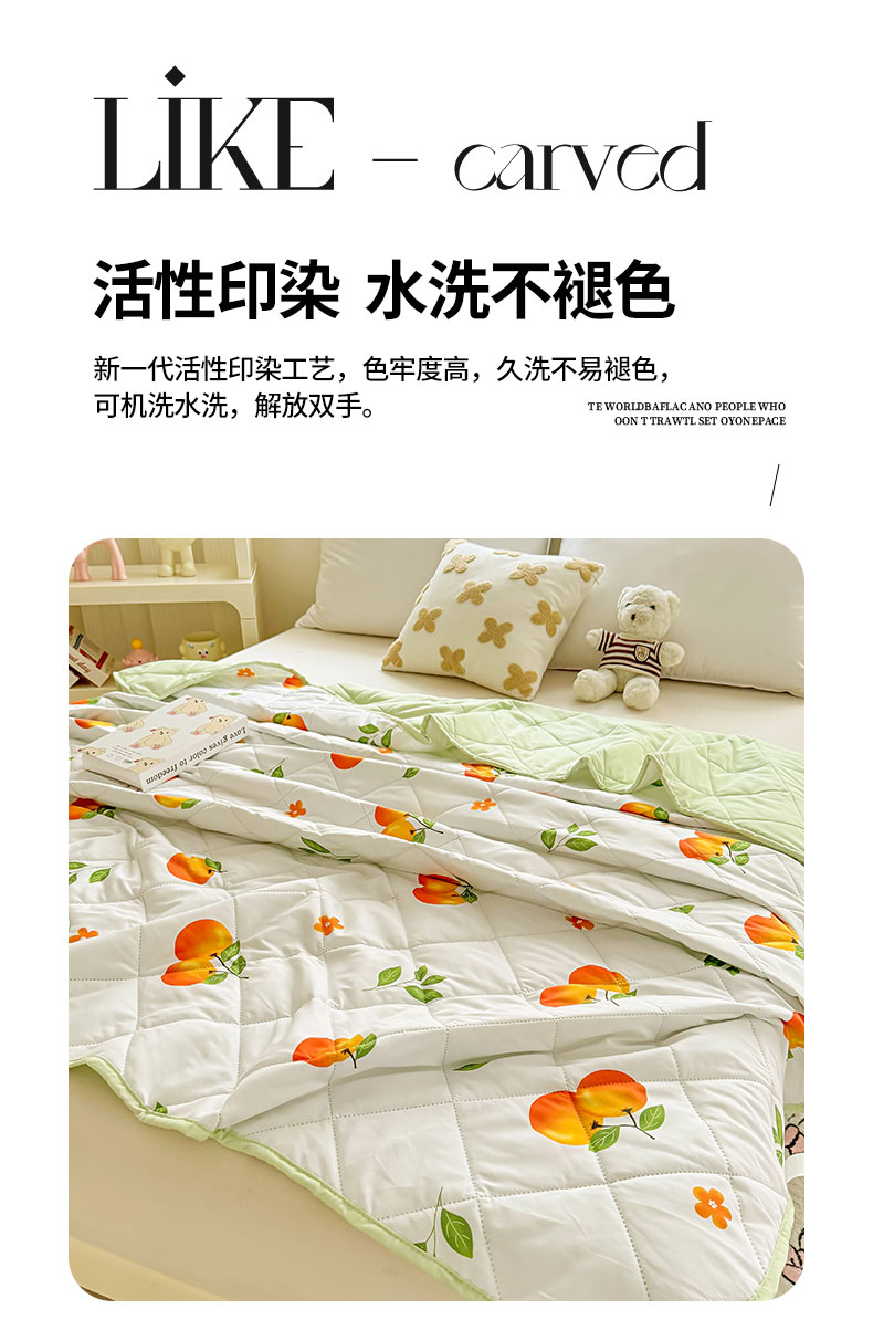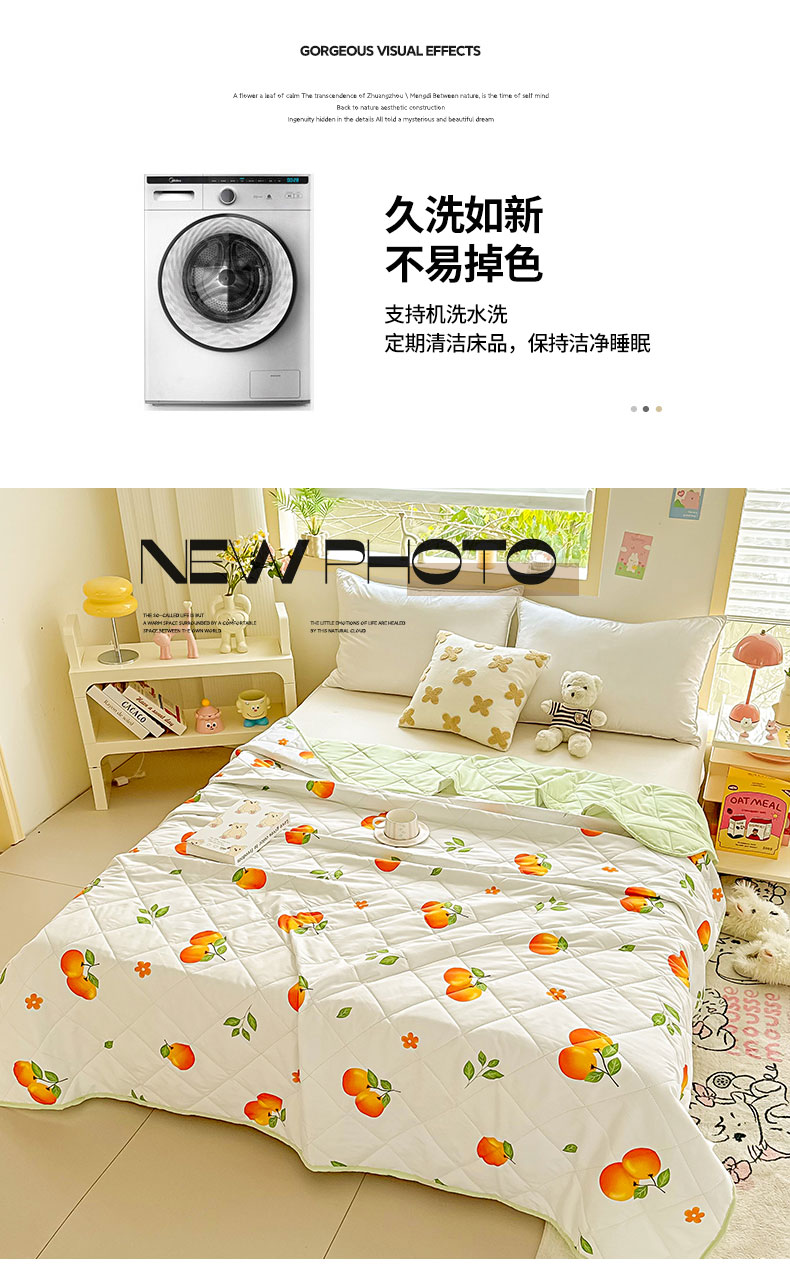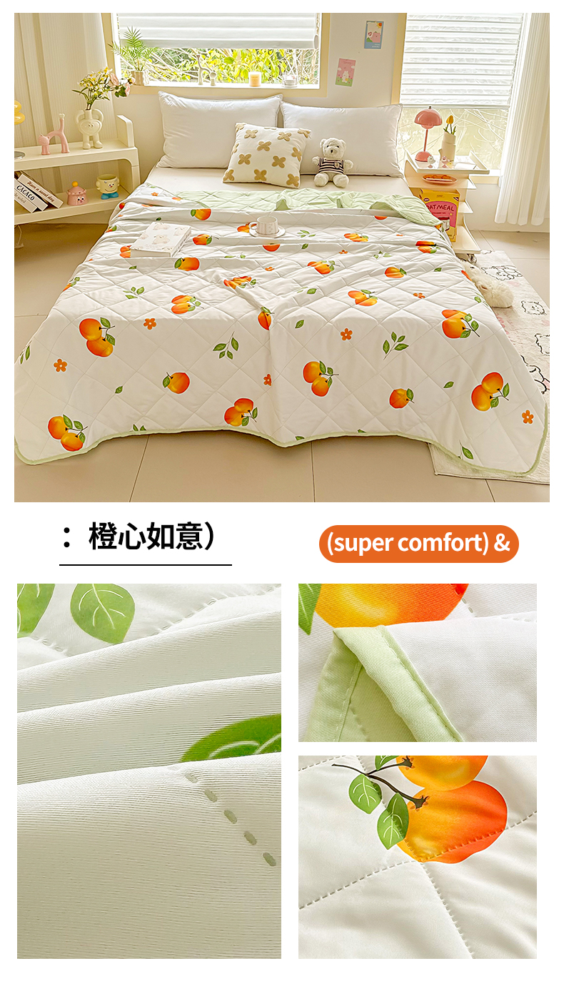 商品名称:憨豆家纺 2025新款纳米印花超声波夏被简约可机洗空调被夏凉被礼品被直播跨境 橙心如意