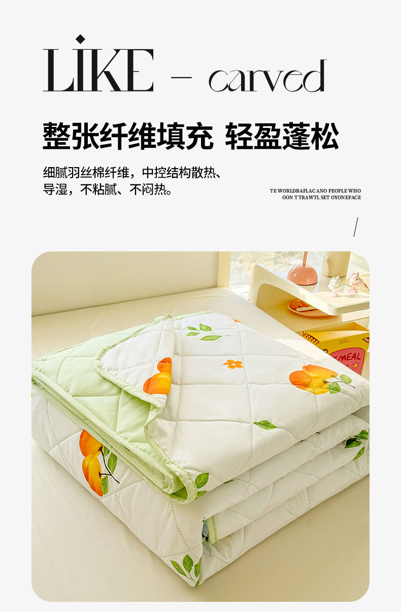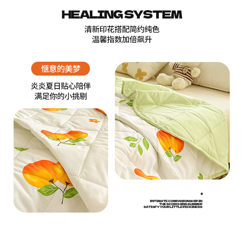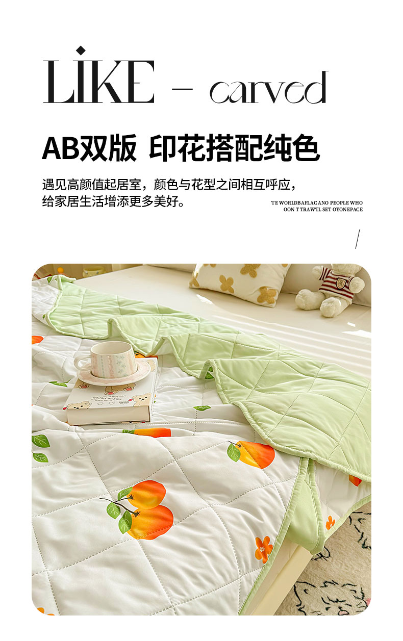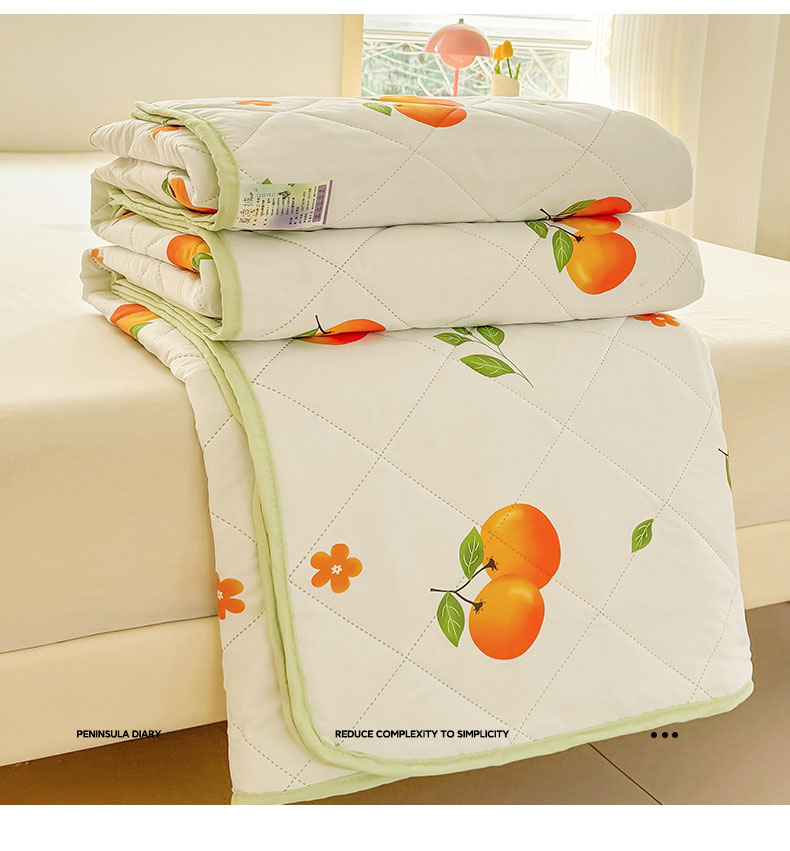商品名称:憨豆家纺 2025新款纳米印花超声波夏被简约可机洗空调被夏凉被礼品被直播跨境 橙心如意