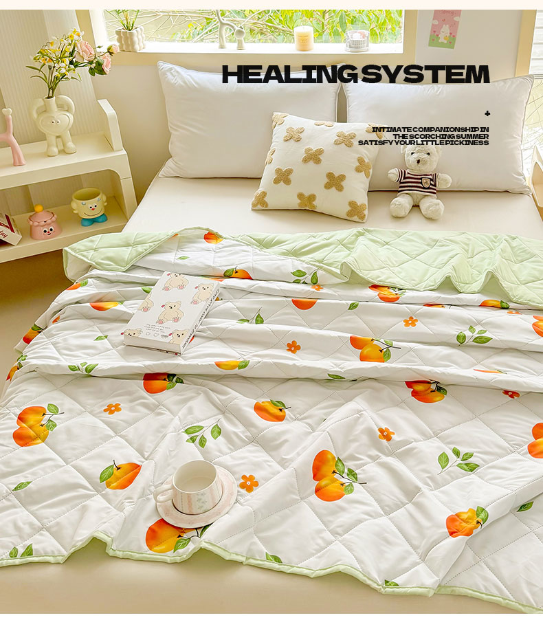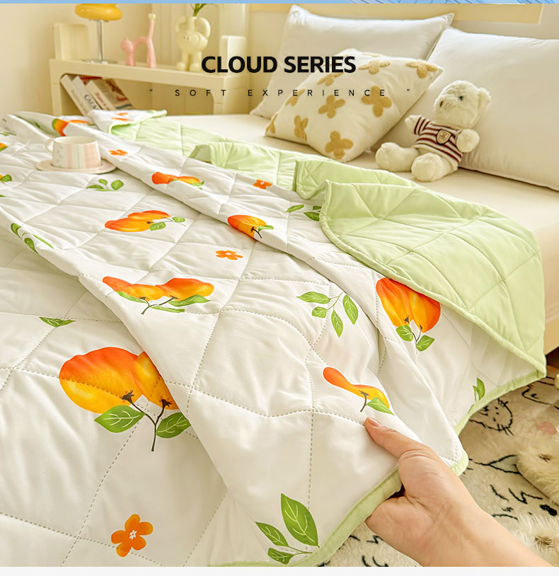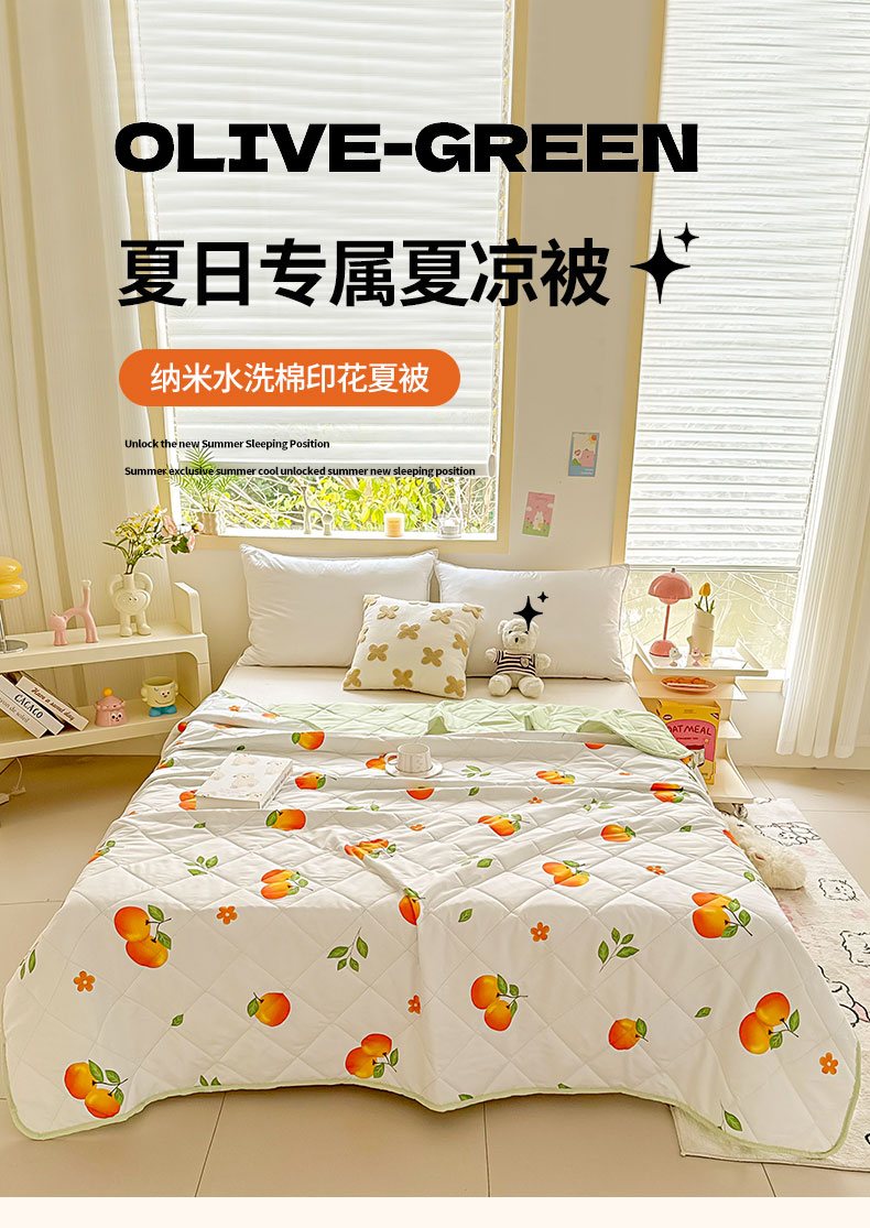 憨豆家纺 2025新款纳米印花超声波夏被简约可机洗空调被夏凉被礼品被直播跨境 橙心如意