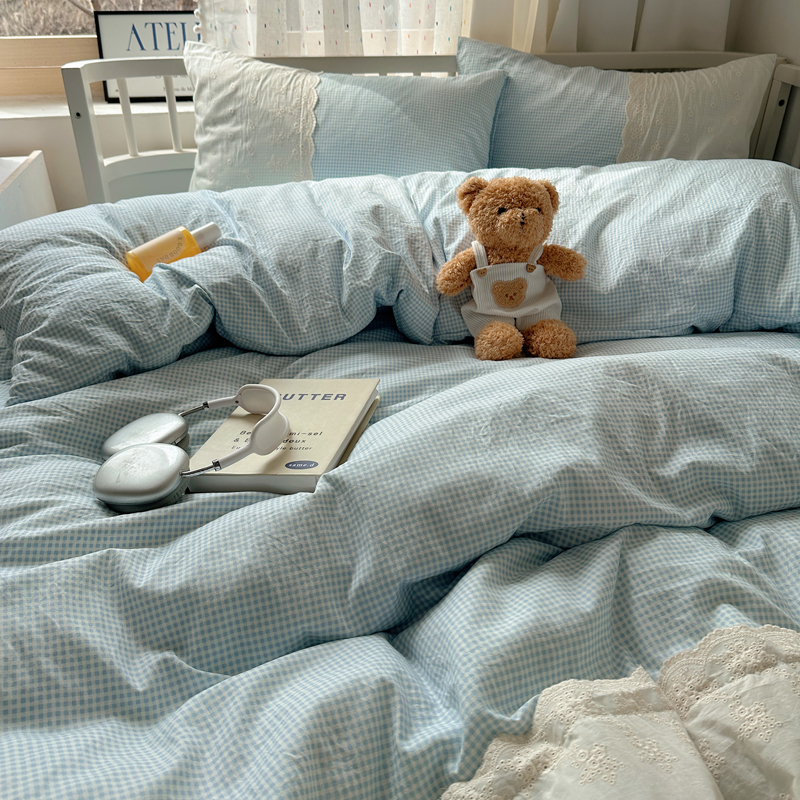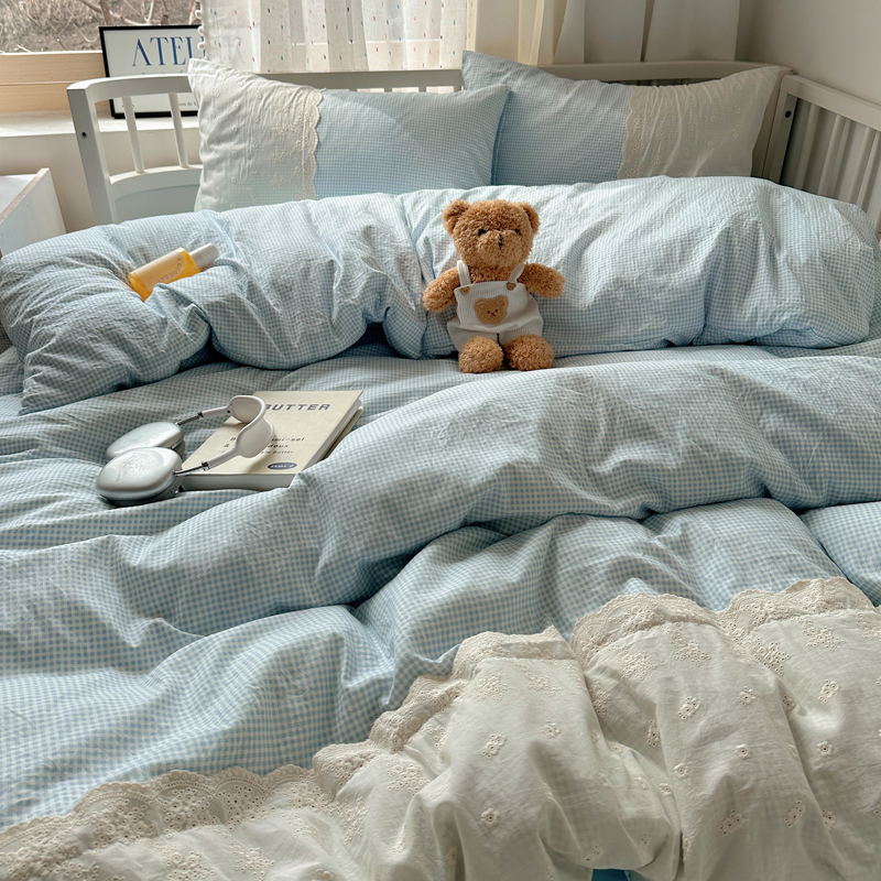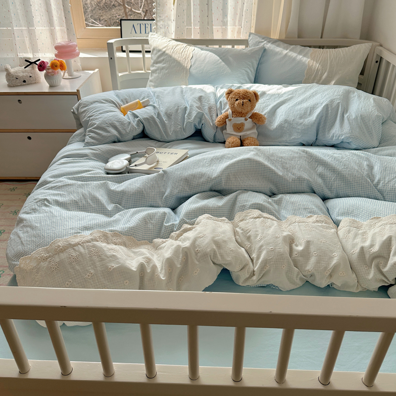 商品名称:顾里家纺 2025新款简约小资系列云感双层纱四件套 小蓝格
