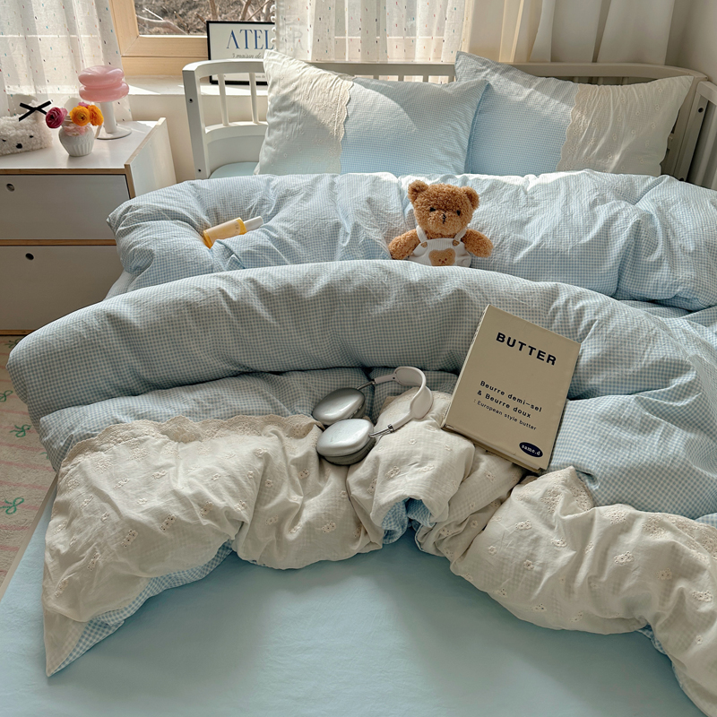 顾里家纺 2025新款简约小资系列云感双层纱四件套 小蓝格