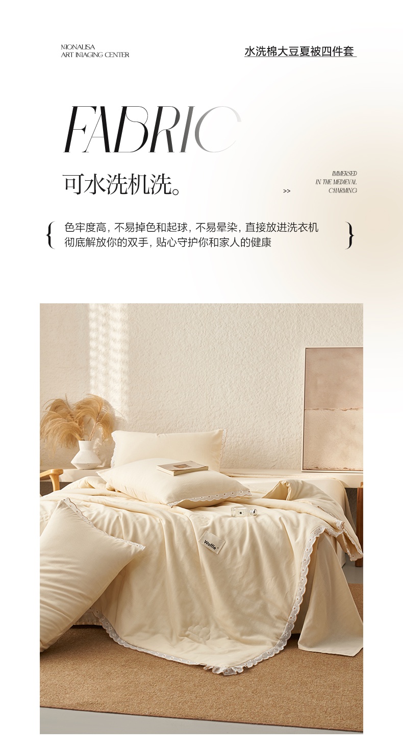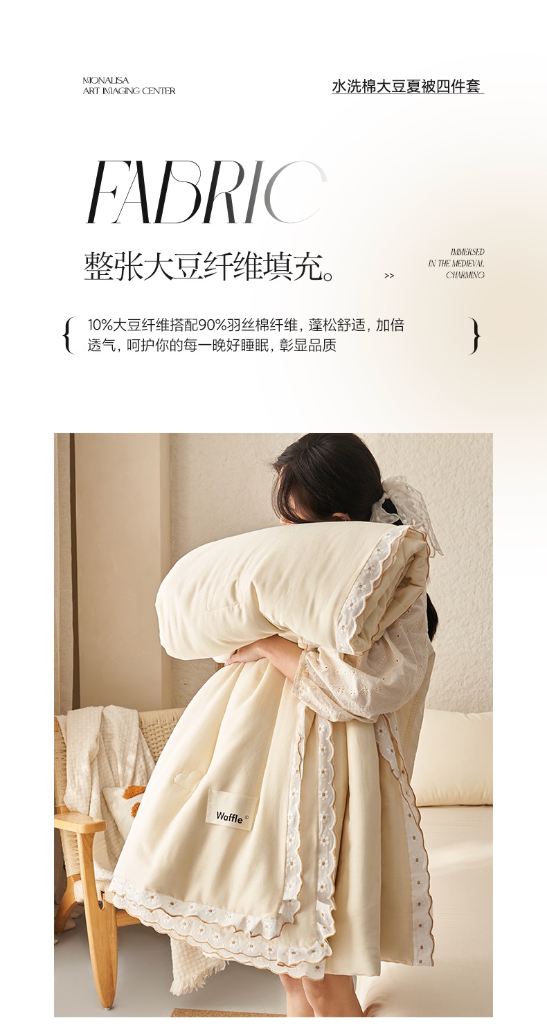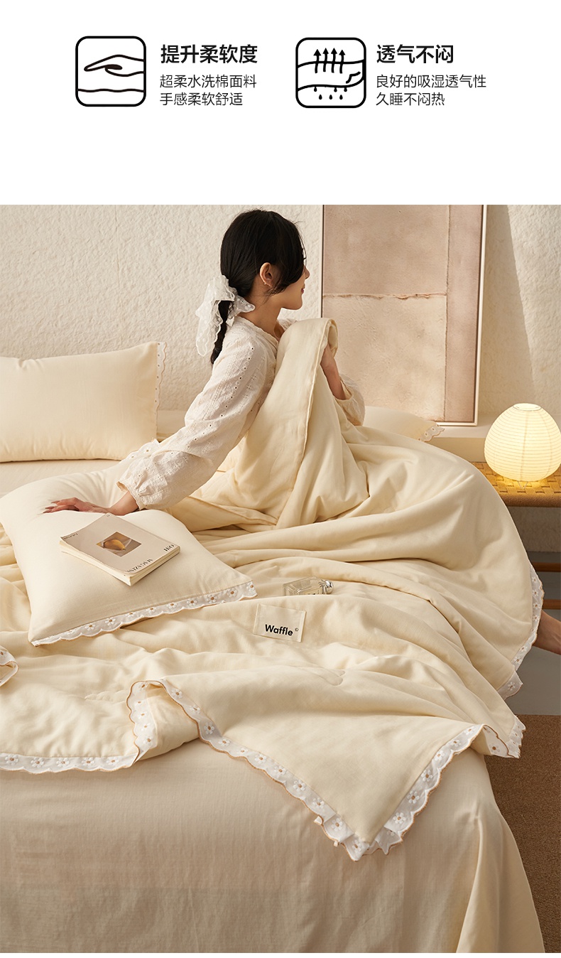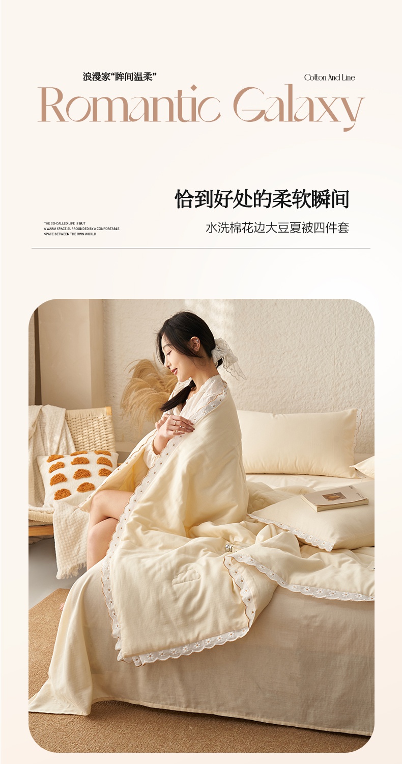 2025新款水洗棉花边大豆夏被四件套夏被-雏菊 雏菊-奶黄