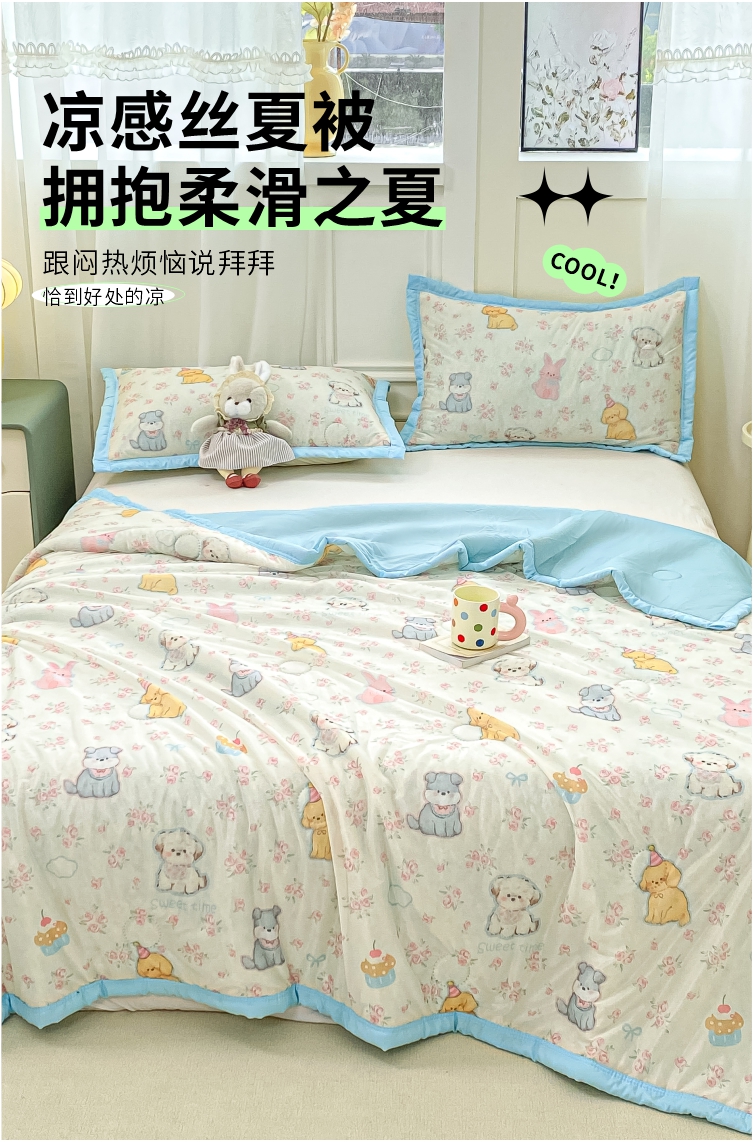 顺顺家纺 2025新款凉感丝印花夏被空调被 萌狗乐园