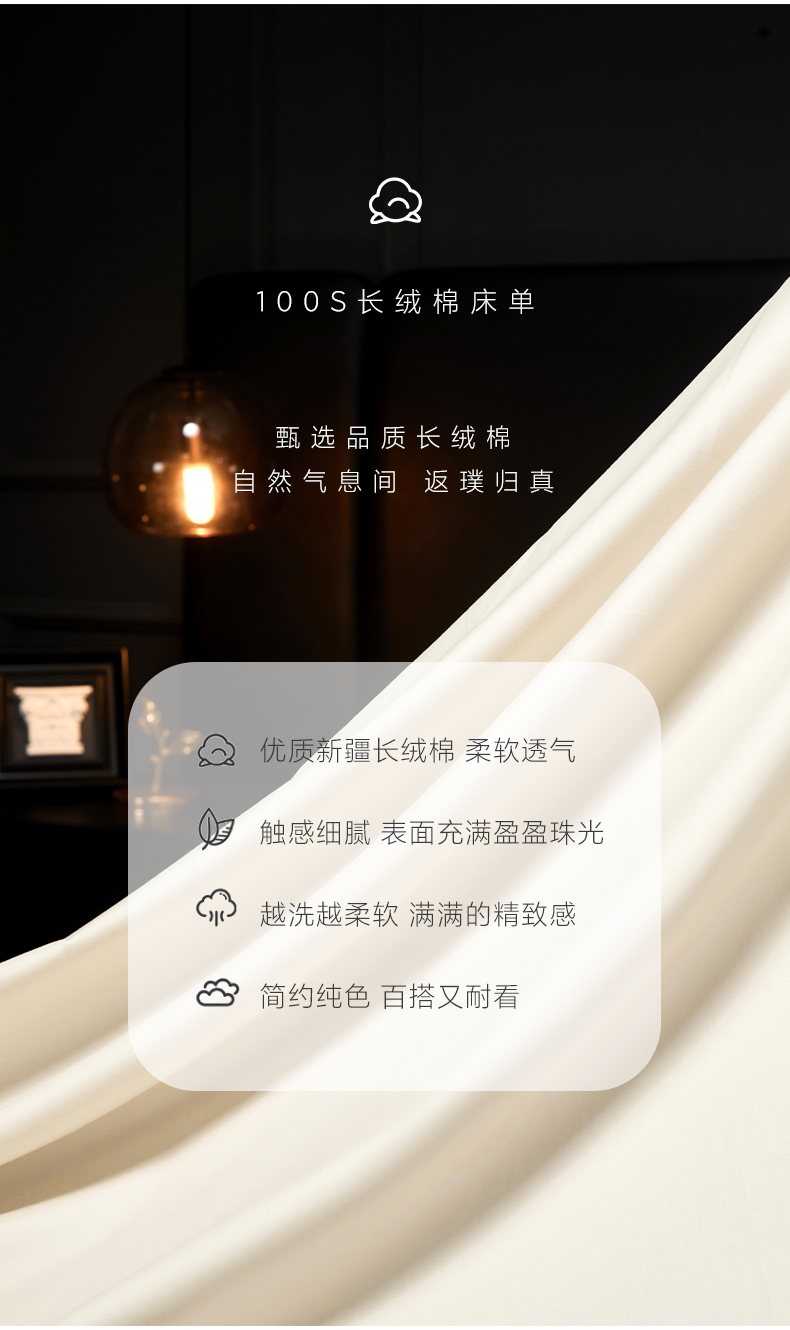 商品名称:秀色2025新款A类高端100s新疆长绒棉纯棉床单单件全棉单人贡缎加厚被单三件套 莫奈-奶昔白