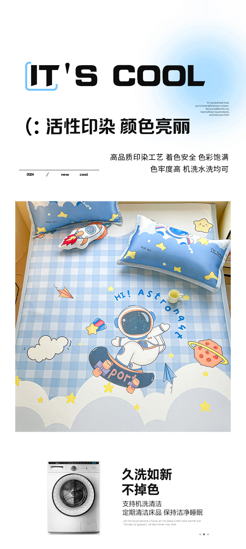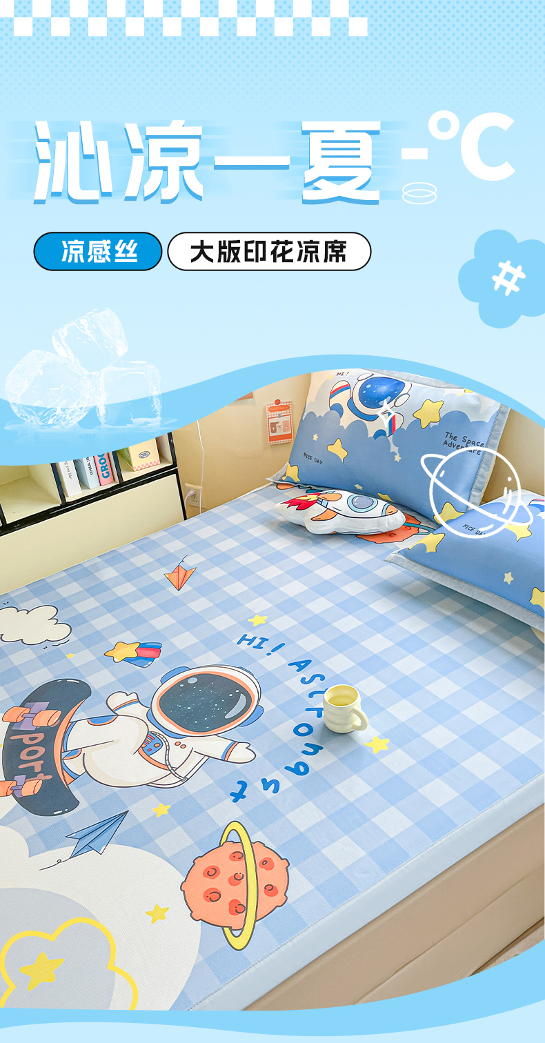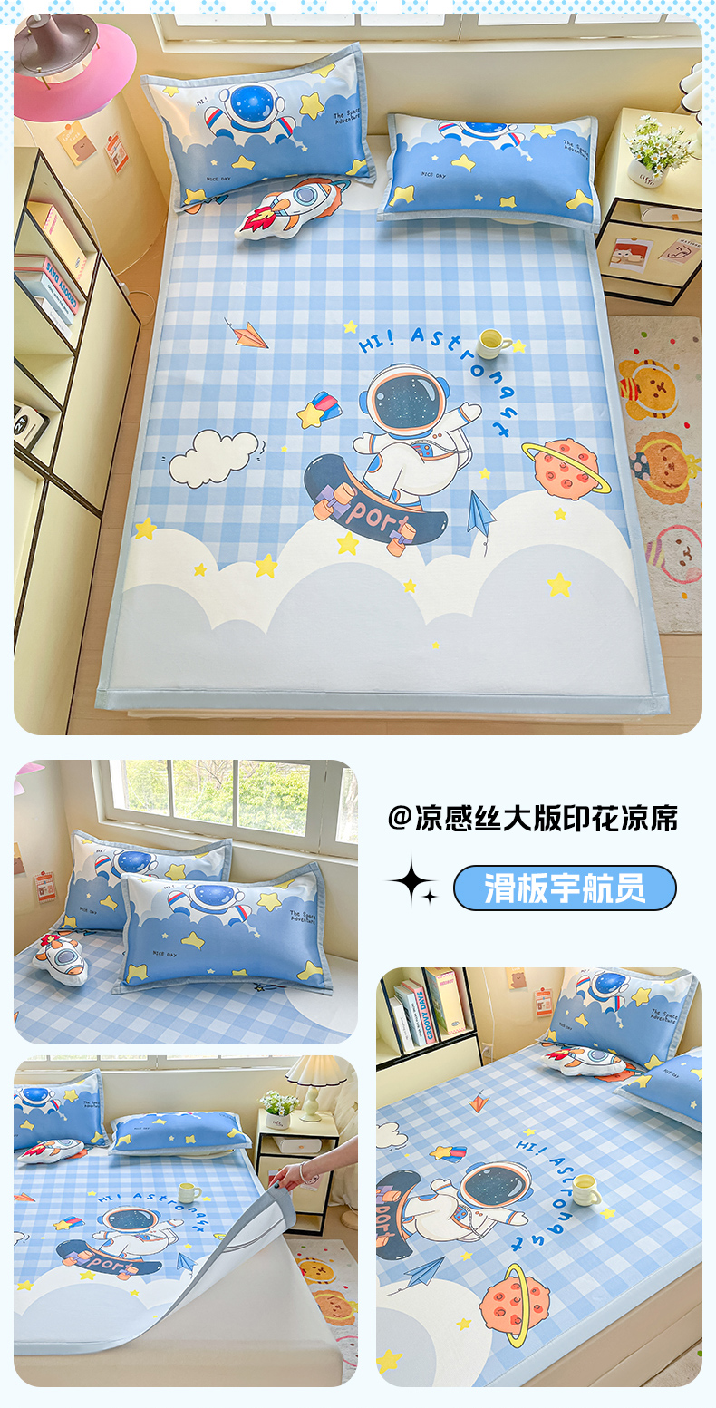 商品名称:博雅 2025新款独家版权A类大版数码印花1200D冰丝凉席 滑板宇航员