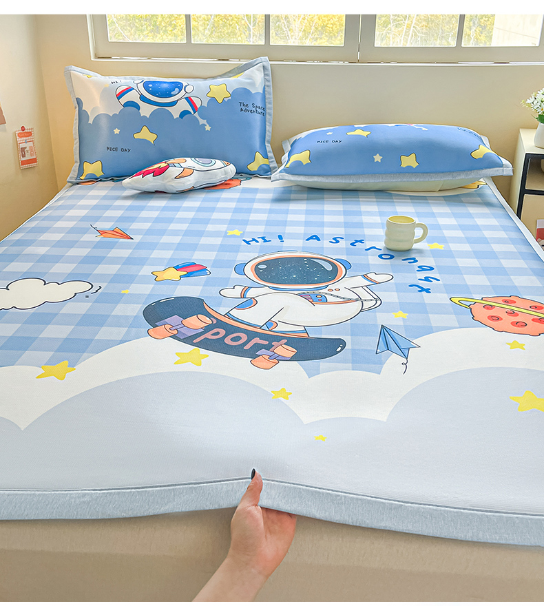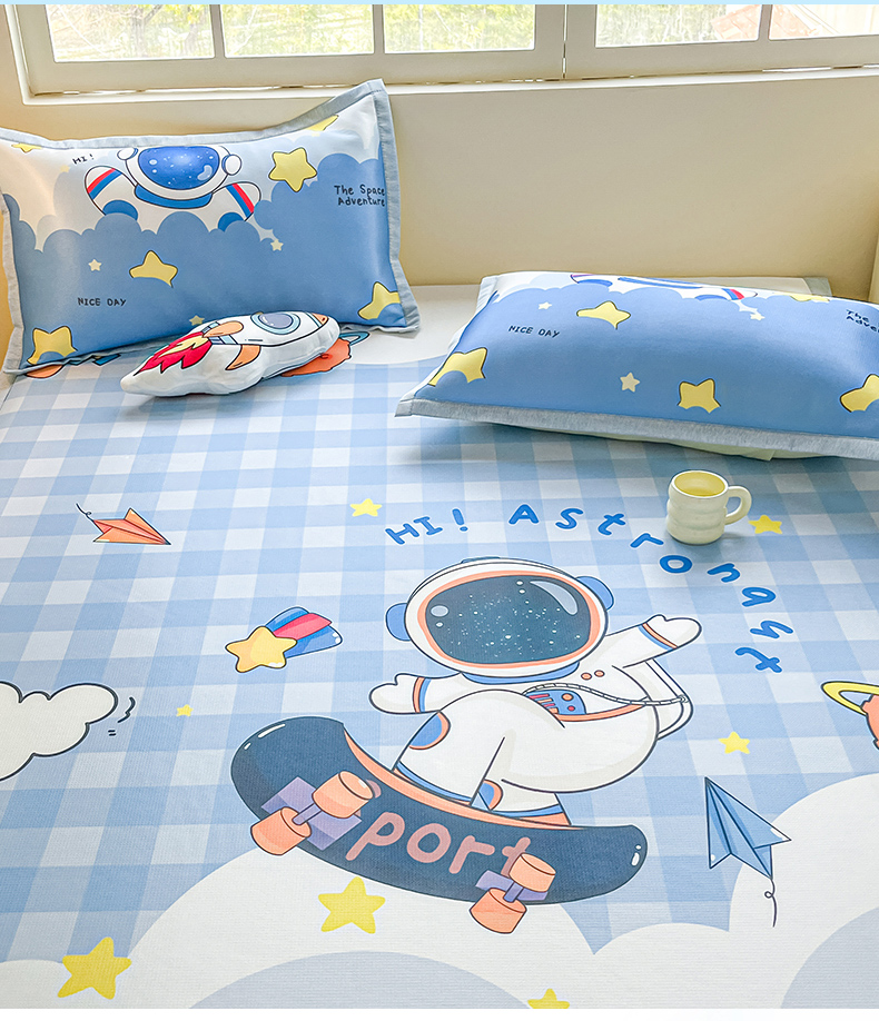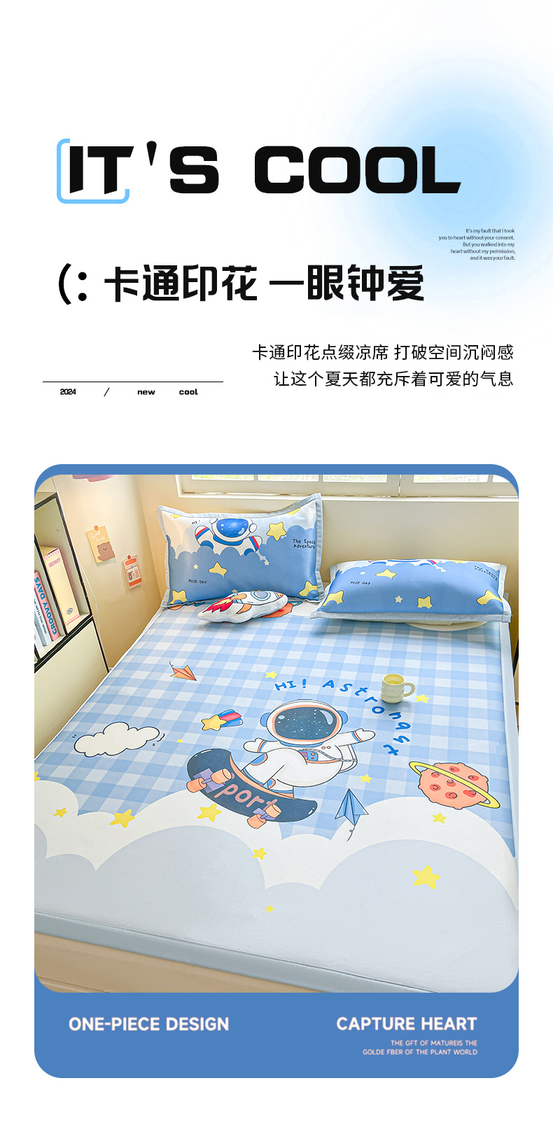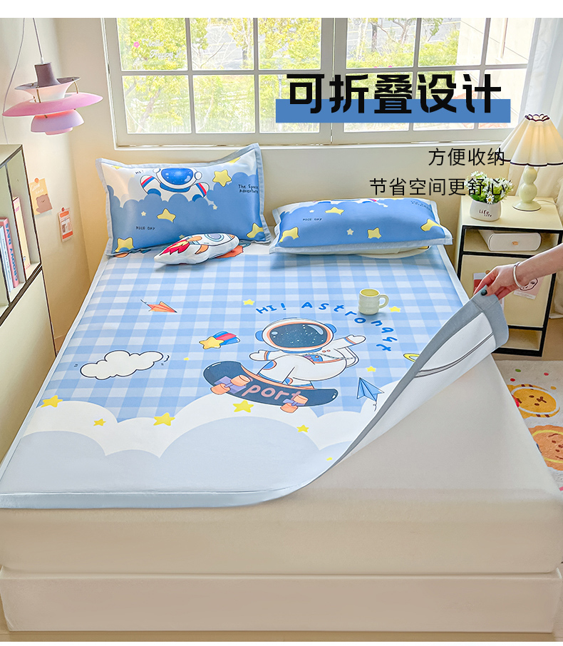 商品名称:博雅 2025新款独家版权A类大版数码印花1200D冰丝凉席 滑板宇航员