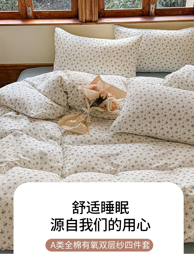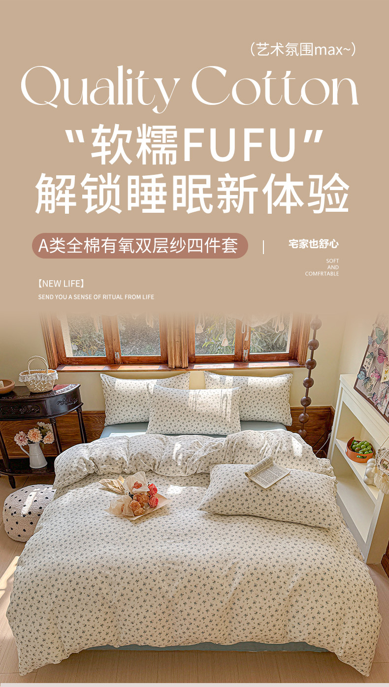 (总)雪夫人 2025新款A类全棉有氧双层纱四件套,春枝,粉棠,卡皮巴拉,可爱球球,兰花草,莫奈花园,桃蹊蝶影,田园小兔