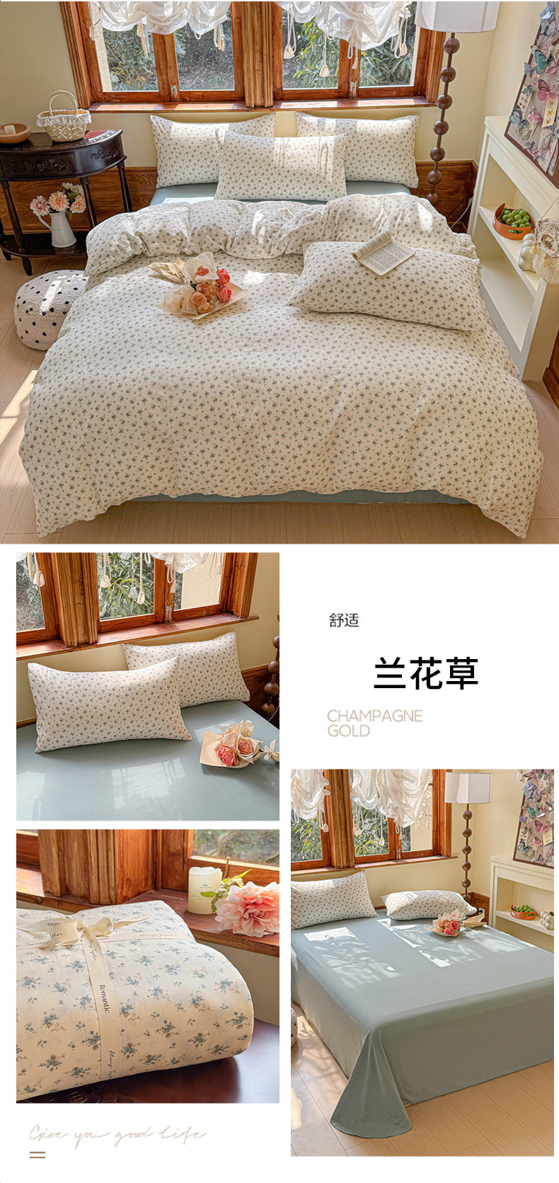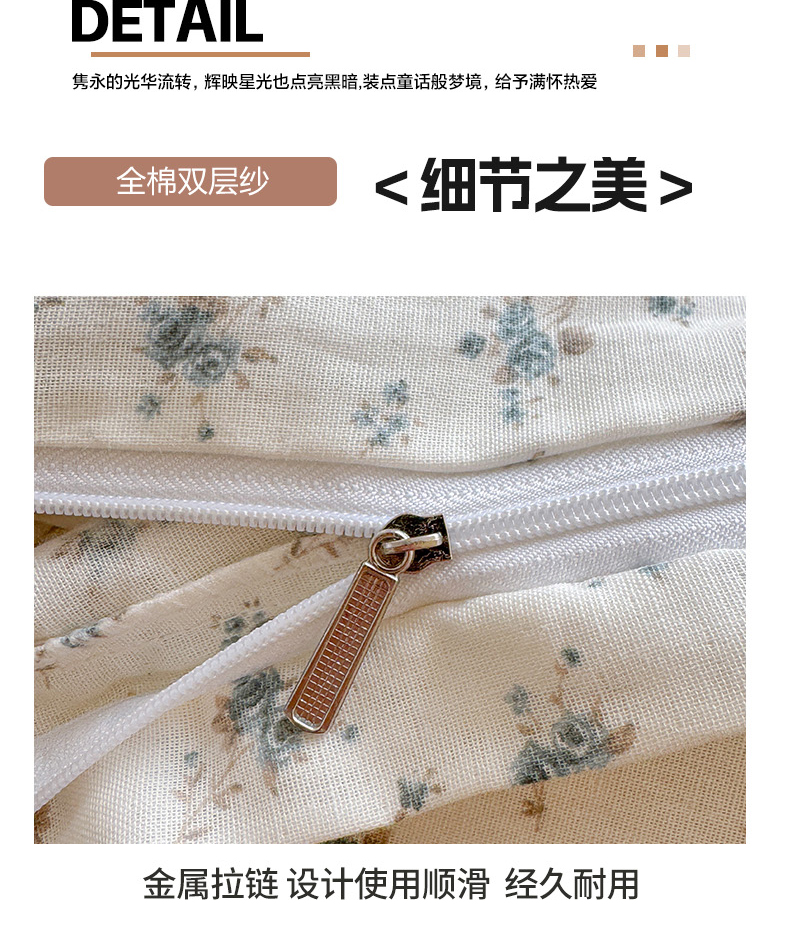 商品名称:雪夫人 2025新款A类全棉有氧双层纱四件套 兰花草