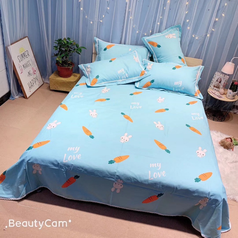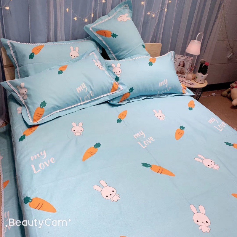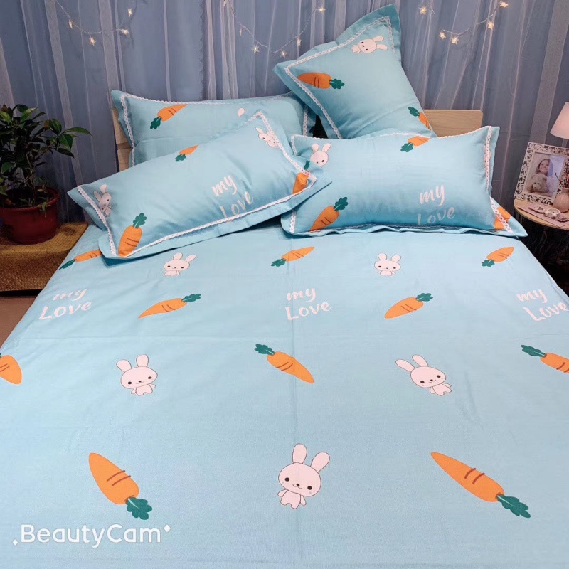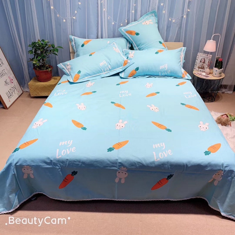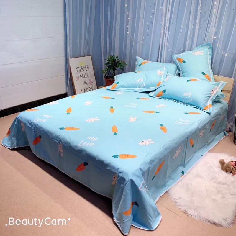 仟网汇 2025全棉老粗布蕾丝花边三件套(无纺布手提包装) 胡萝卜蓝