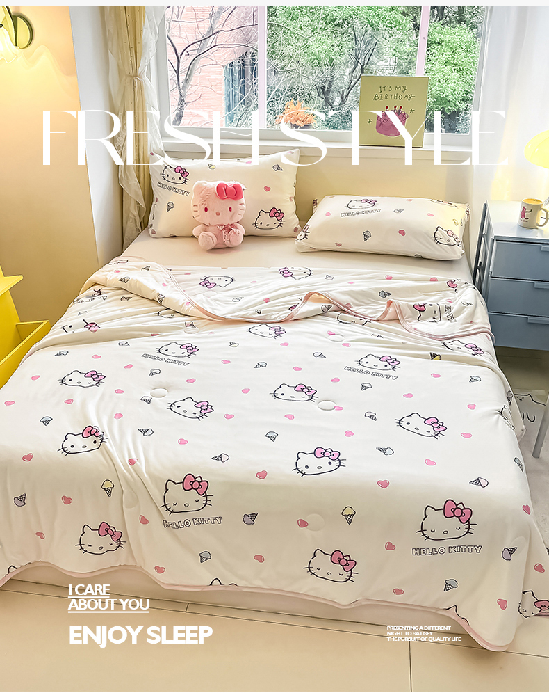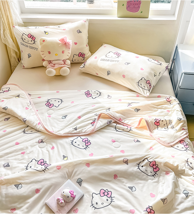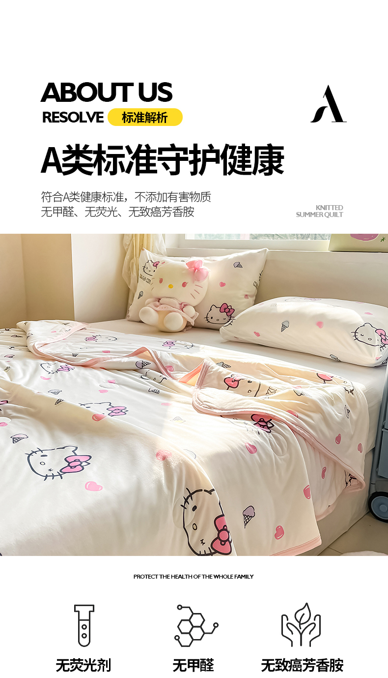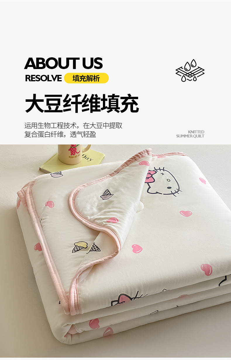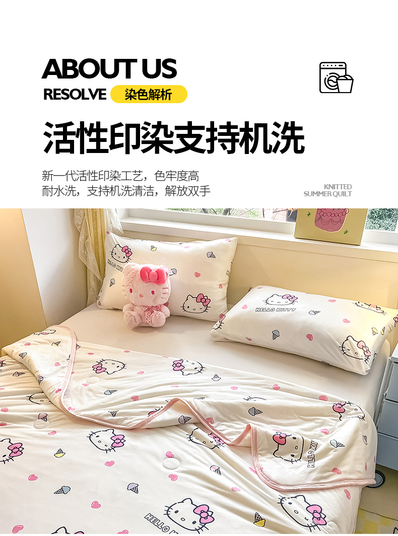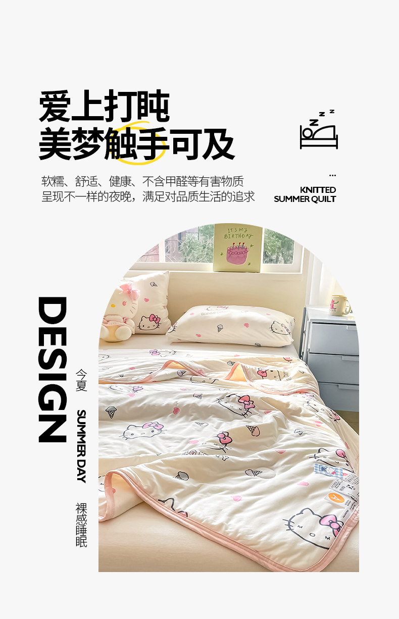 • 91家纺网 家纺一手货源 找家纺 桃子家居 2025新款A类三丽鸥正版授权高品质牛奶丝软糯针织棉大豆夏被系列 针织棉三丽鸥-甜甜kitty