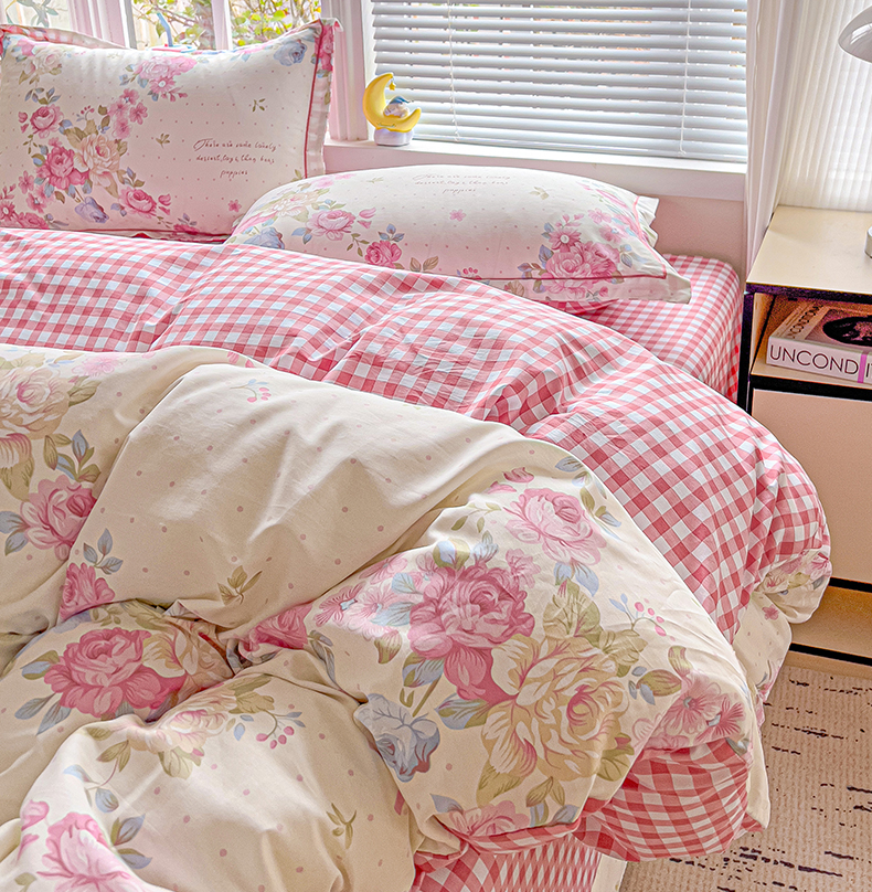 商品名称:优选 2025新款直播新款100%全棉小清新印花四件套纯棉三件套(一字绣工艺款)学生三件套 花梦初