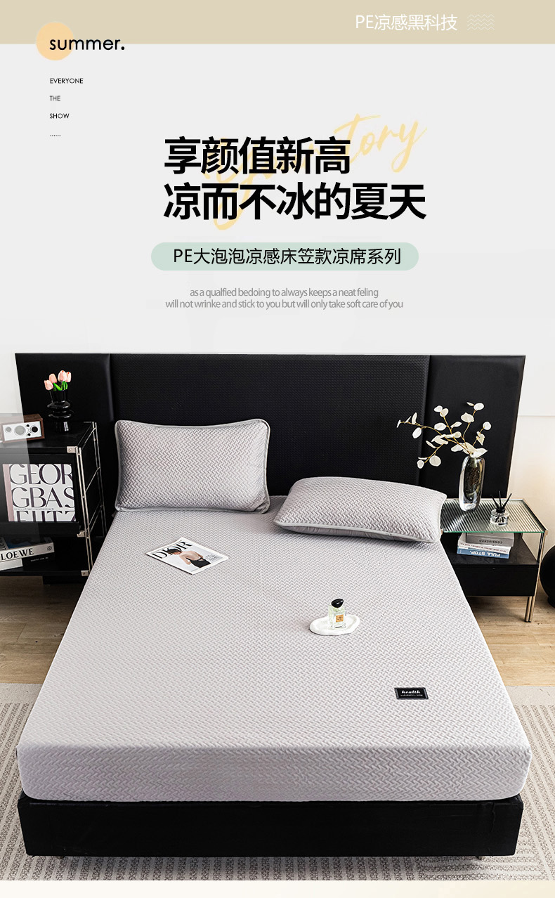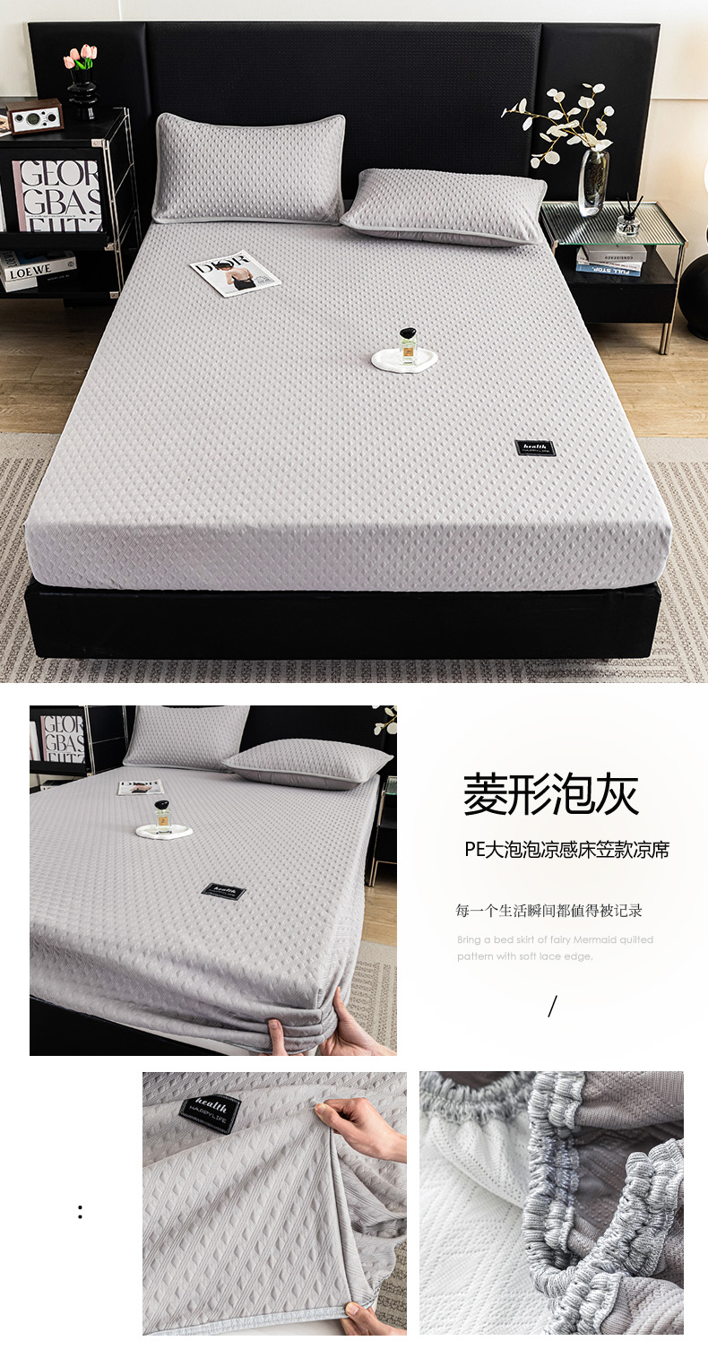 • 91家纺网 家纺一手货源 找家纺 倾慕家纺 2025新款PE大泡泡凉感床笠款凉席 箭纹灰