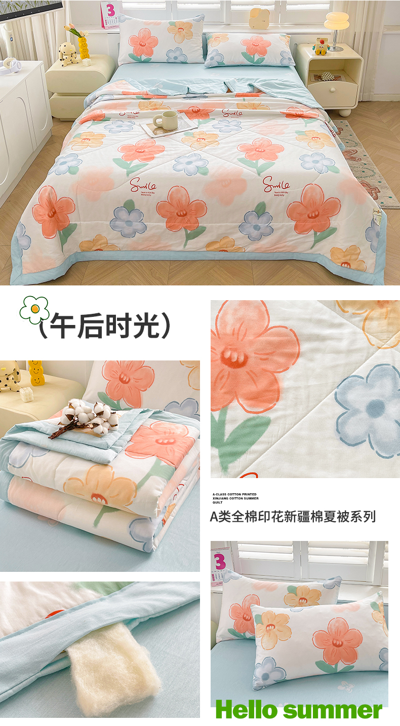 • 91家纺网 家纺一手货源 找家纺 思雅庭 2025新款里外全棉夏被新疆棉花夏凉被空调被 午后时光