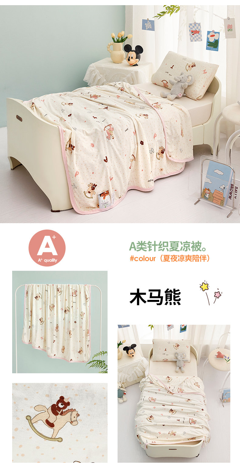 丝涟家居 2025新款A类双面针织棉卡通小清新滚绳工艺夏被木马熊,木马熊