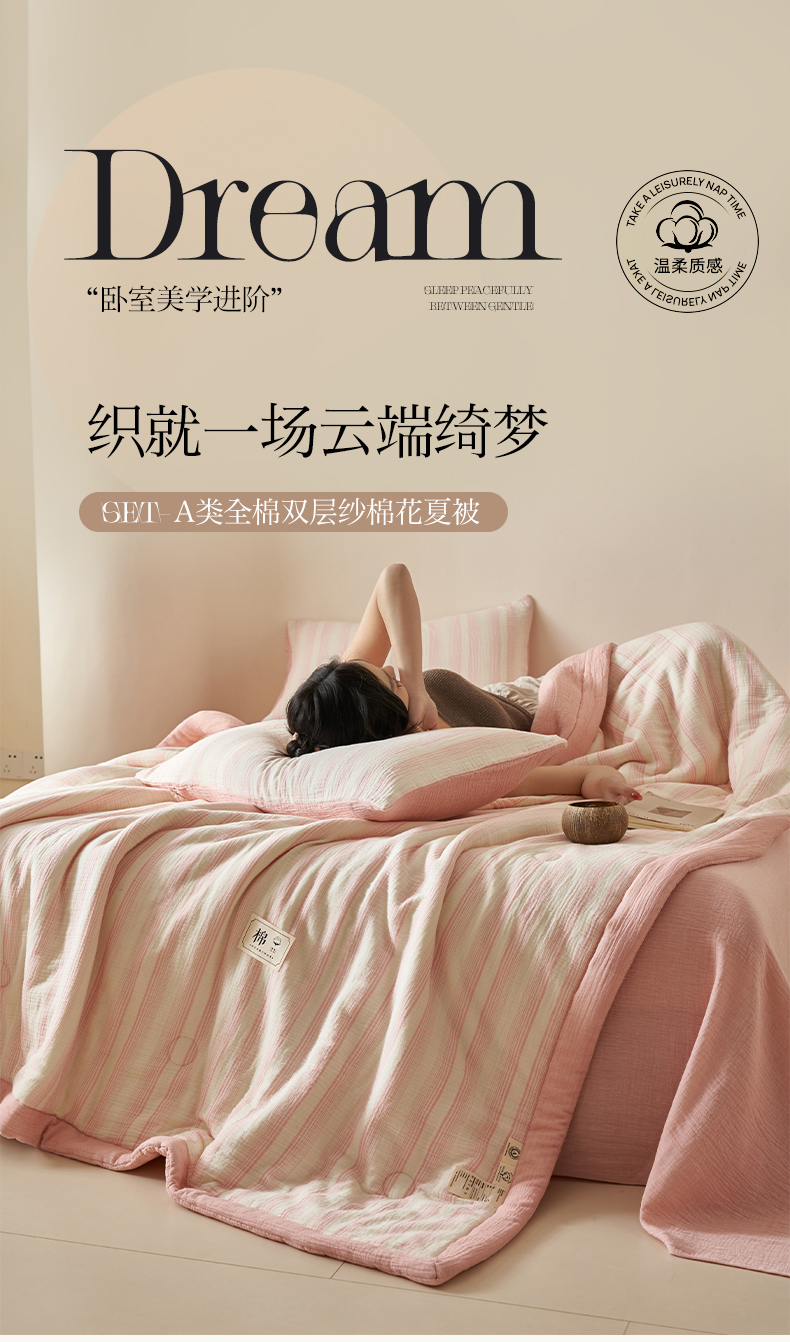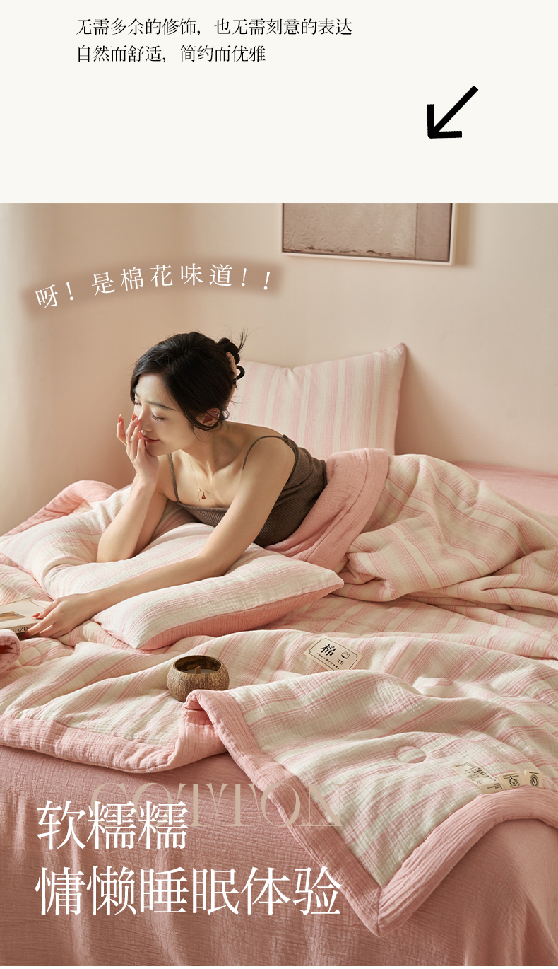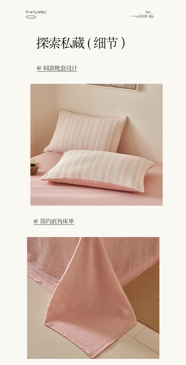 当前位置: 91家纺网 > 商品网购 > 床品套件 > 四件套 > 夏被四件套 > 简如 2025新款A类全棉双层纱皱皱纱夏被四件套-时予系列 时予-粉
