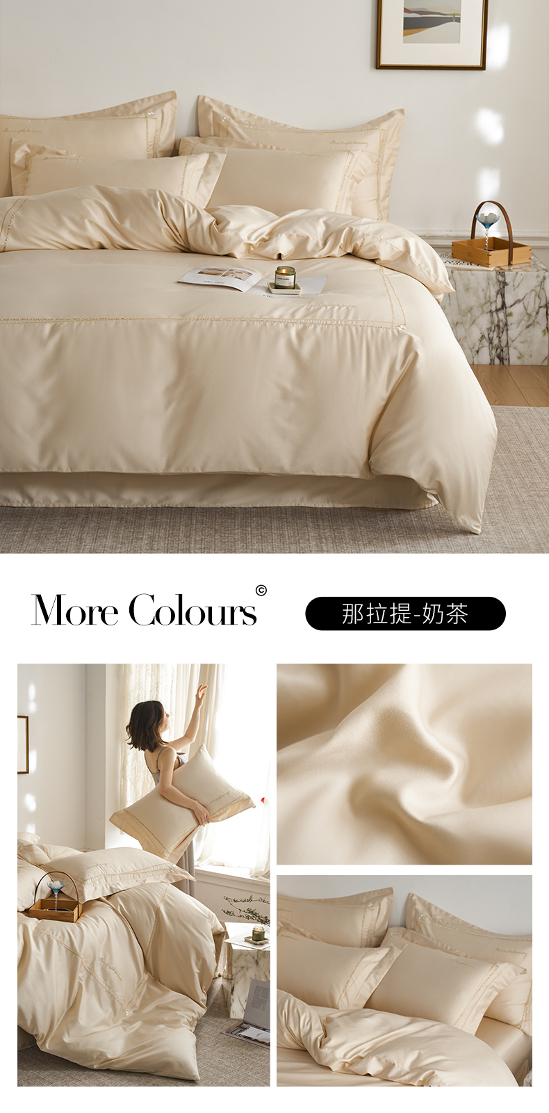 商品名称:千朵森 2025新款长绒棉纯棉大版刺绣四件套(那拉提) 那拉提-奶茶