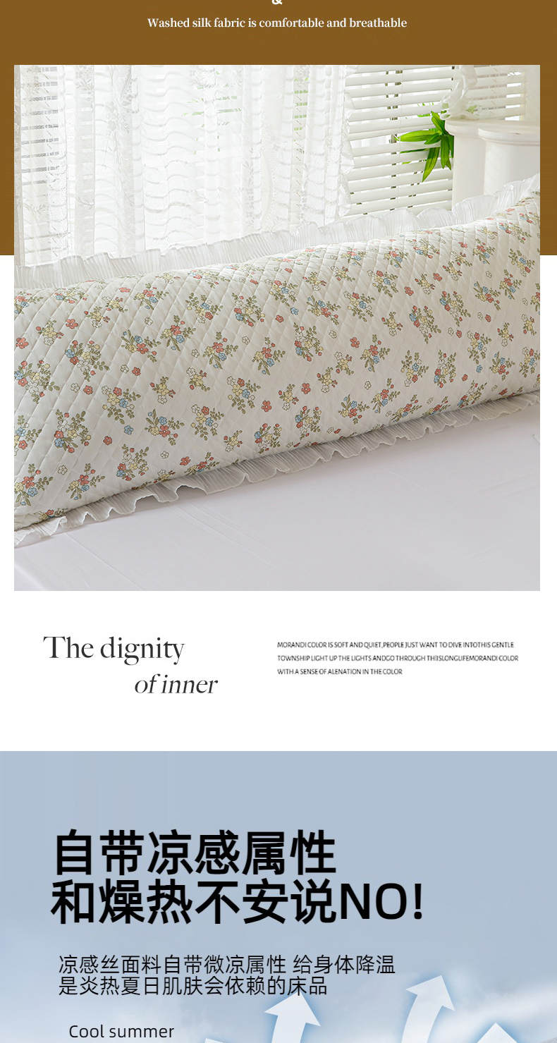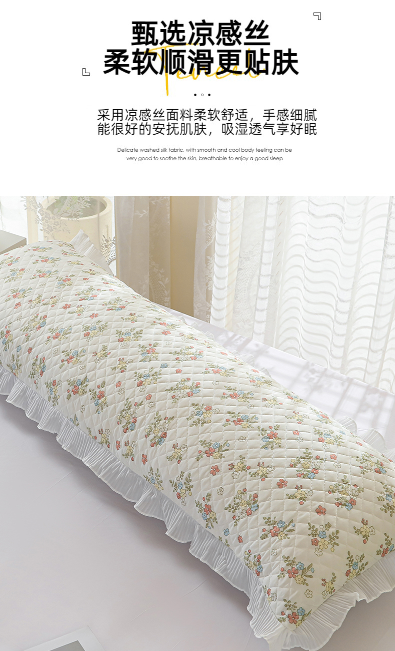 商品名称:(总)美宜家 2025新款夏季凉感丝双人枕套花边情侣长枕套