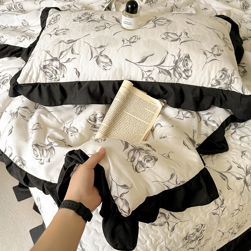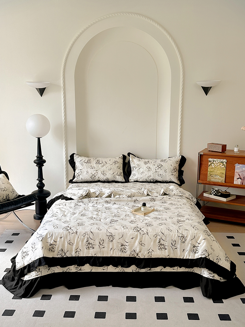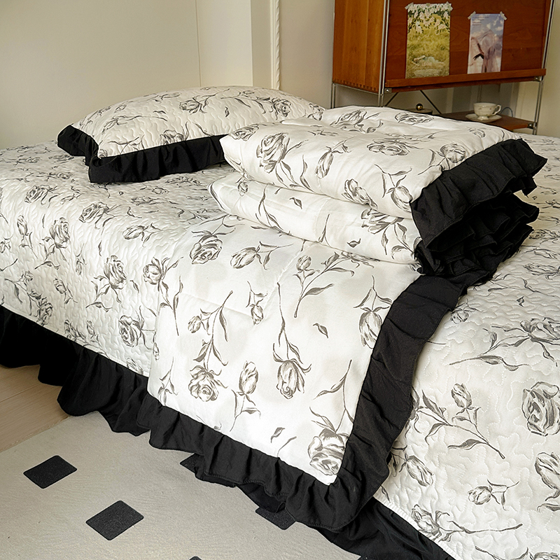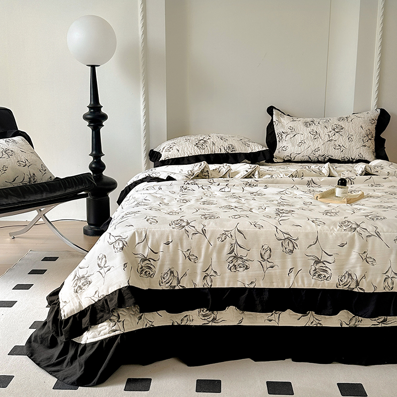 • 91家纺网 家纺一手货源 找家纺 韩秀家纺 2025新款赫本风水洗棉花边夏被床盖四件套夹棉多层纱软糯感夏凉被空调被针织棉泡泡棉 水墨玫瑰