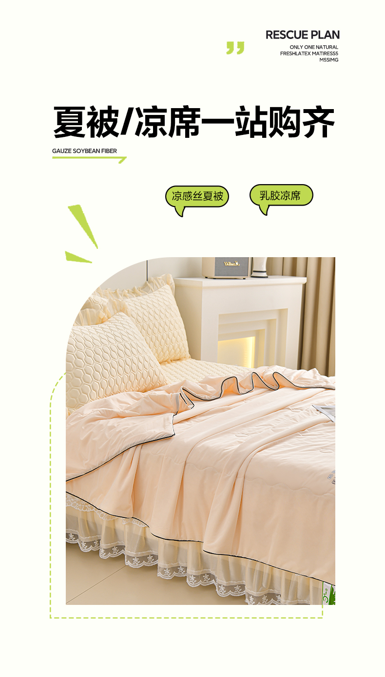 当前位置: 91家纺网 > 商品网购 > 床上用品 > 凉席 > 乳胶凉席 > 民新家纺 2025新款凉感丝床裙款乳胶凉席夏被四件套凉席三件套 唯美-淡奶黄