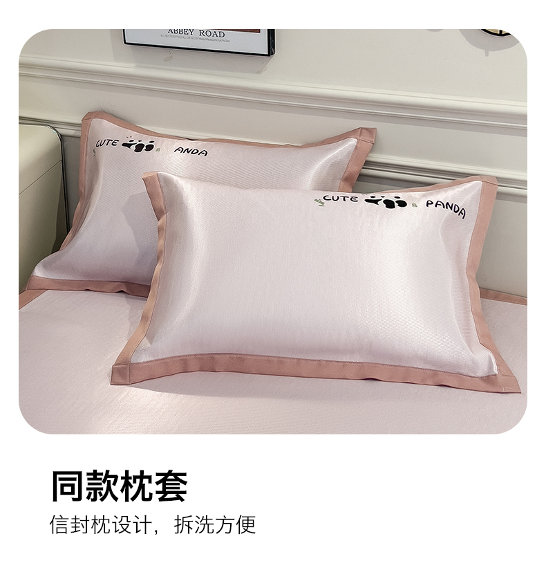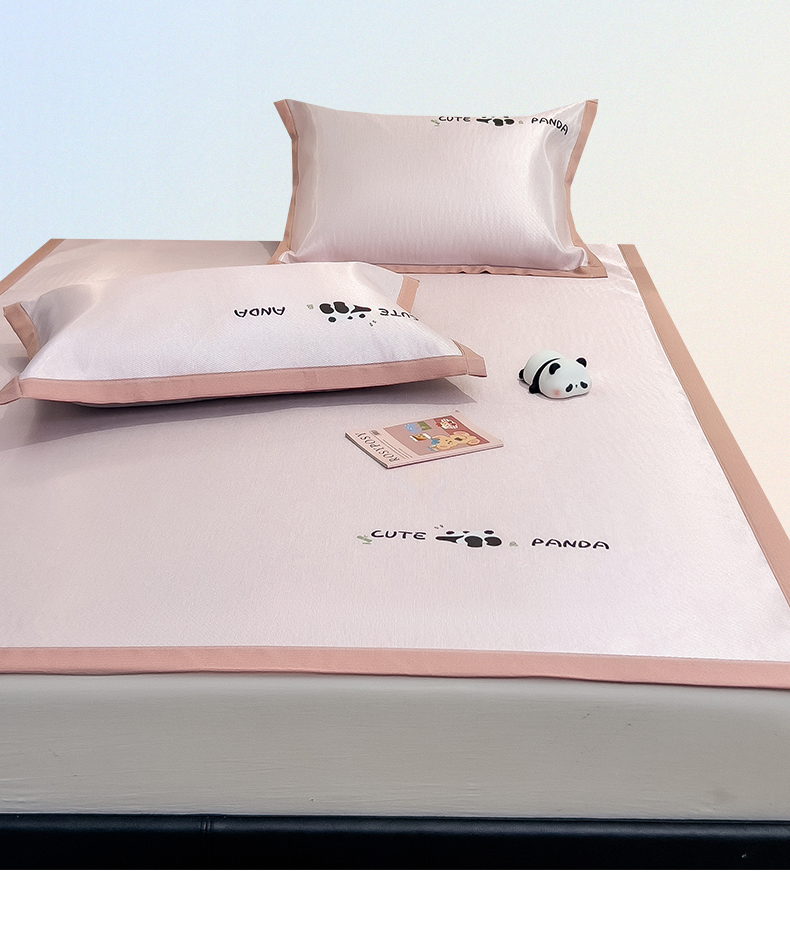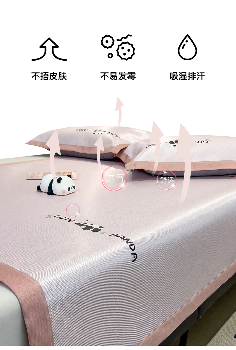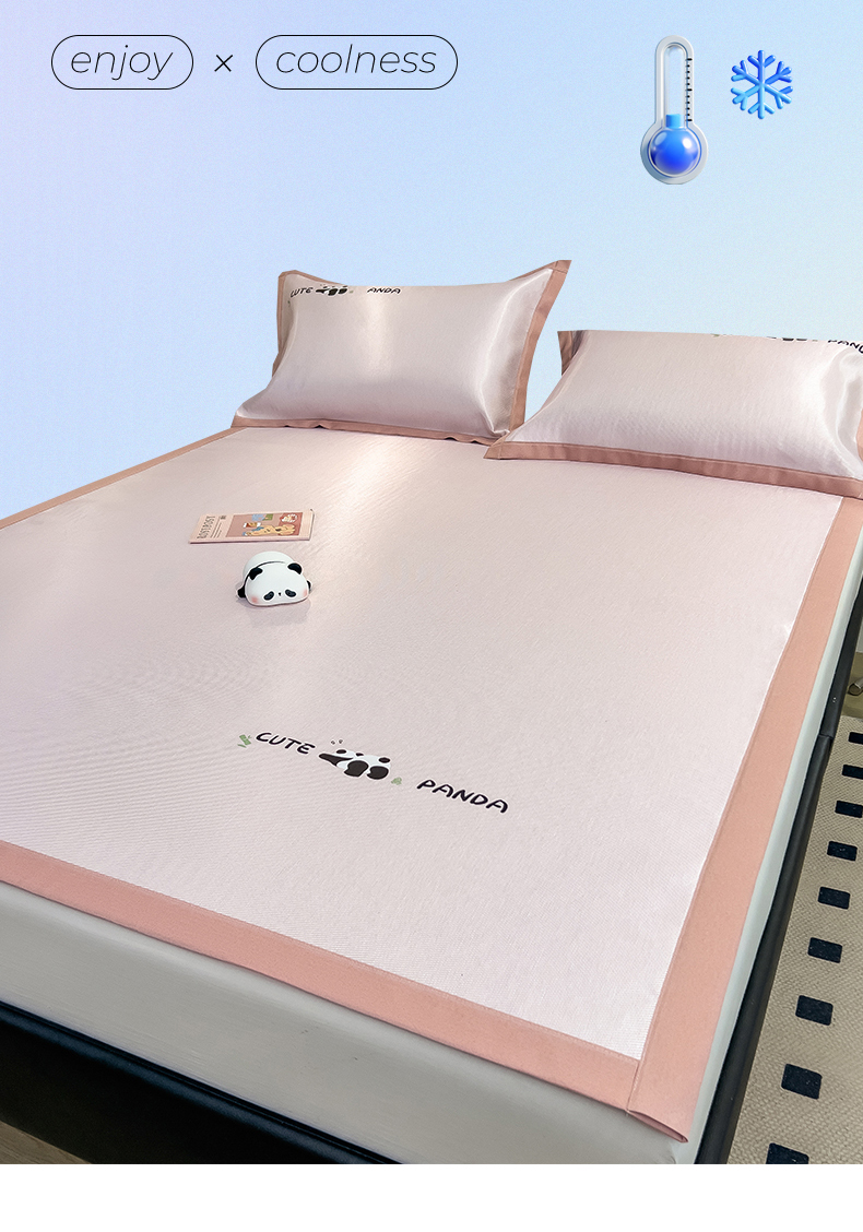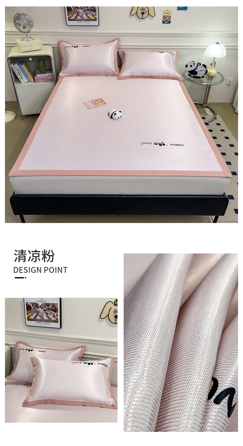 星座家纺 2025新款600D熊猫烫画冰丝凉席三件套 清凉粉