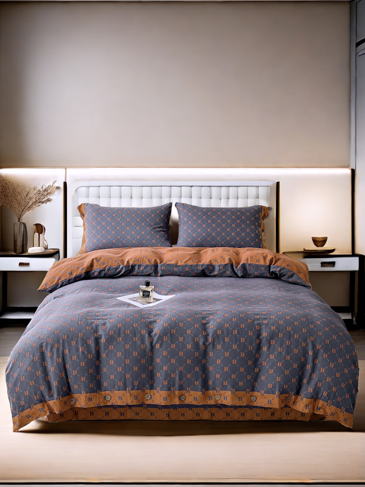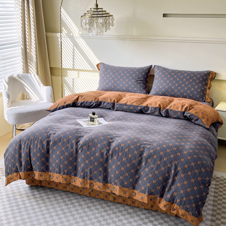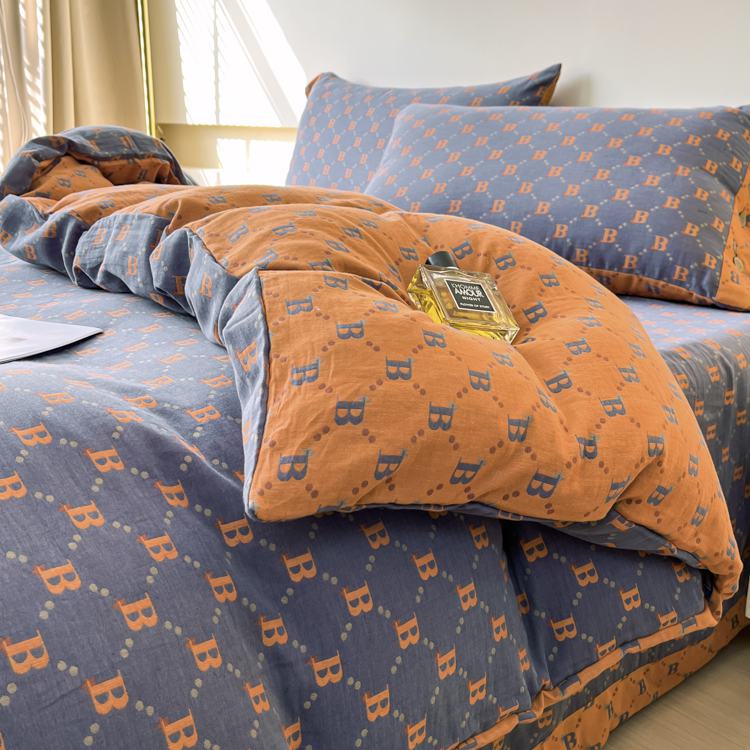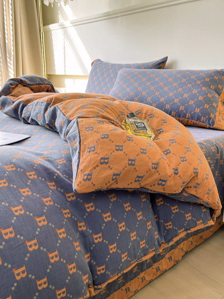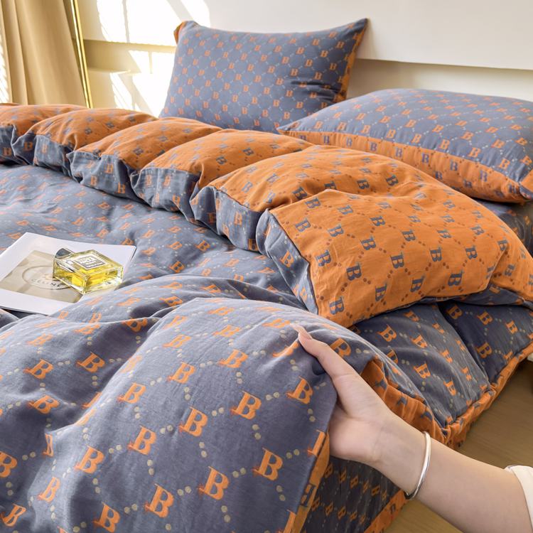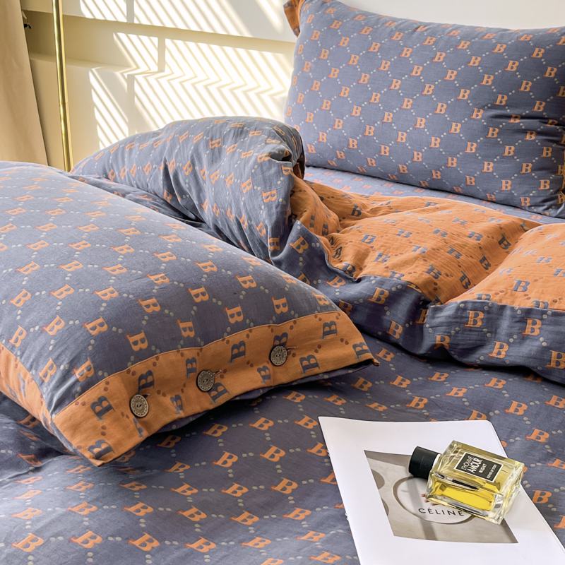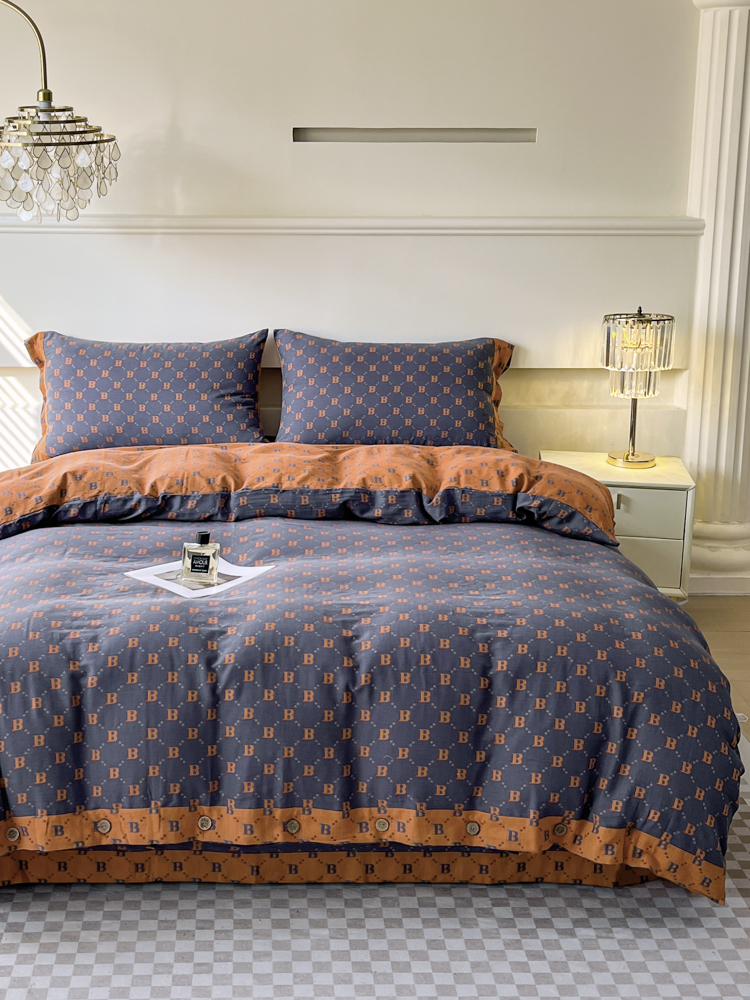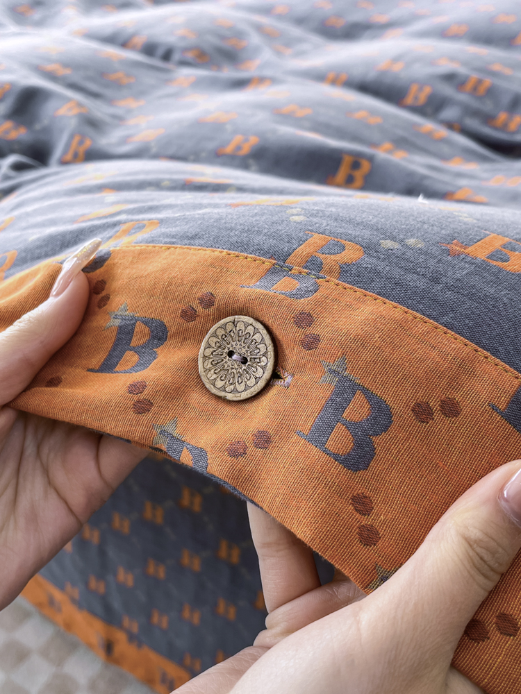 (总)鲁爱 2025新款全棉色织双层纱纽扣款四件套