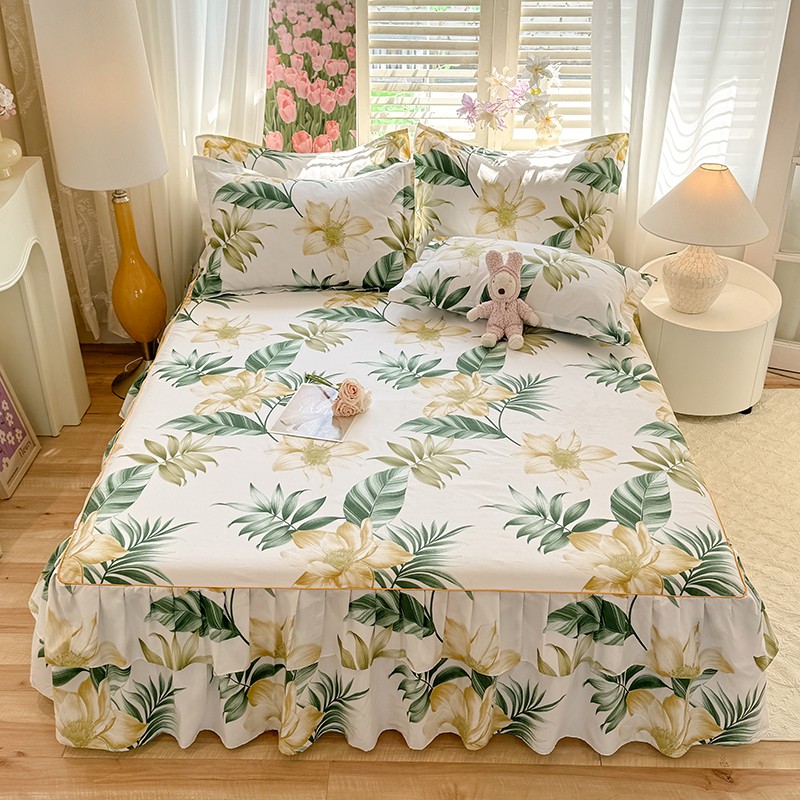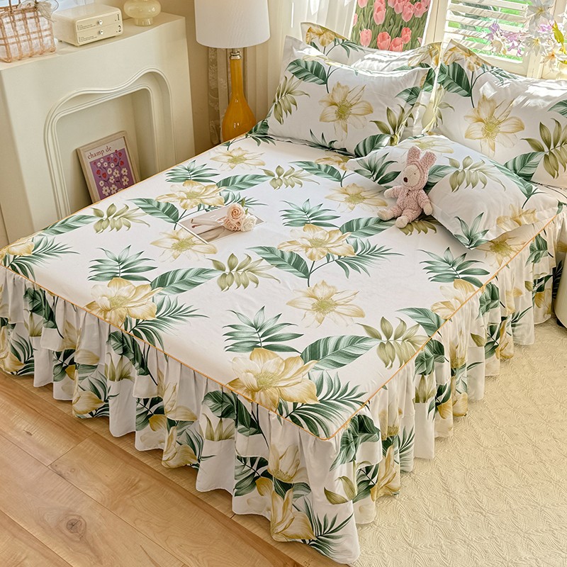 • 91家纺网 家纺一手货源 找家纺 优家居 2025新款芦荟棉床裙三件套 热带雨林