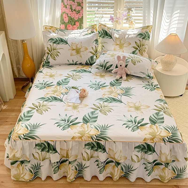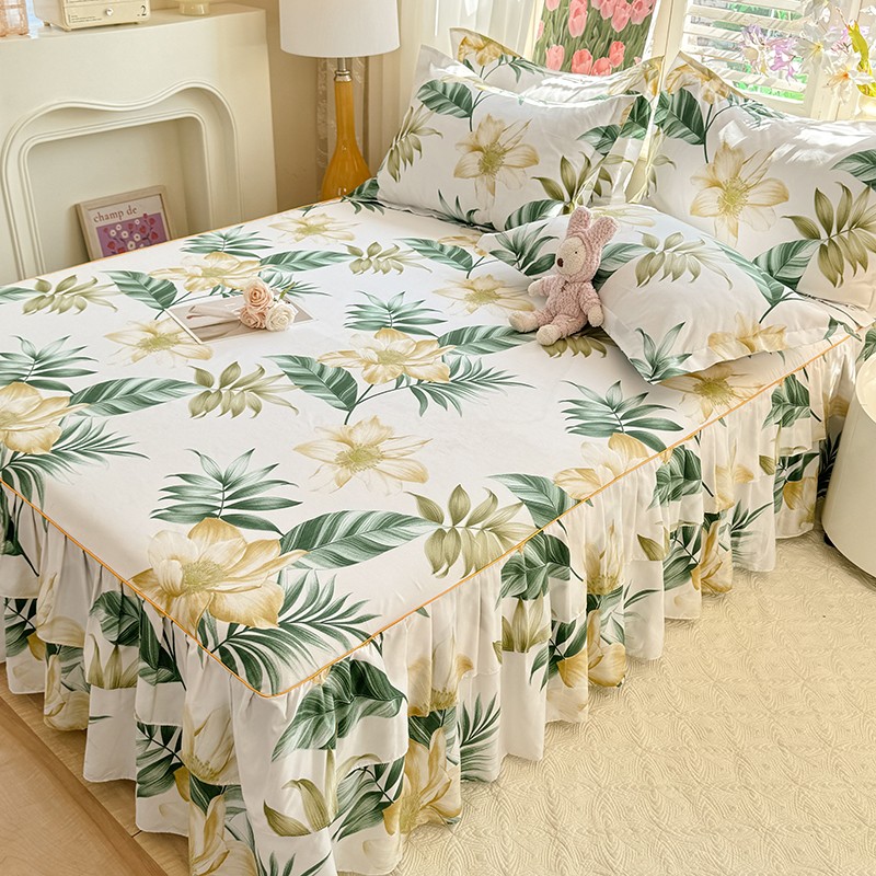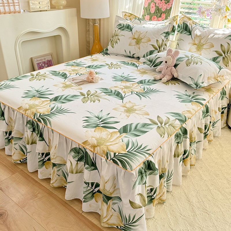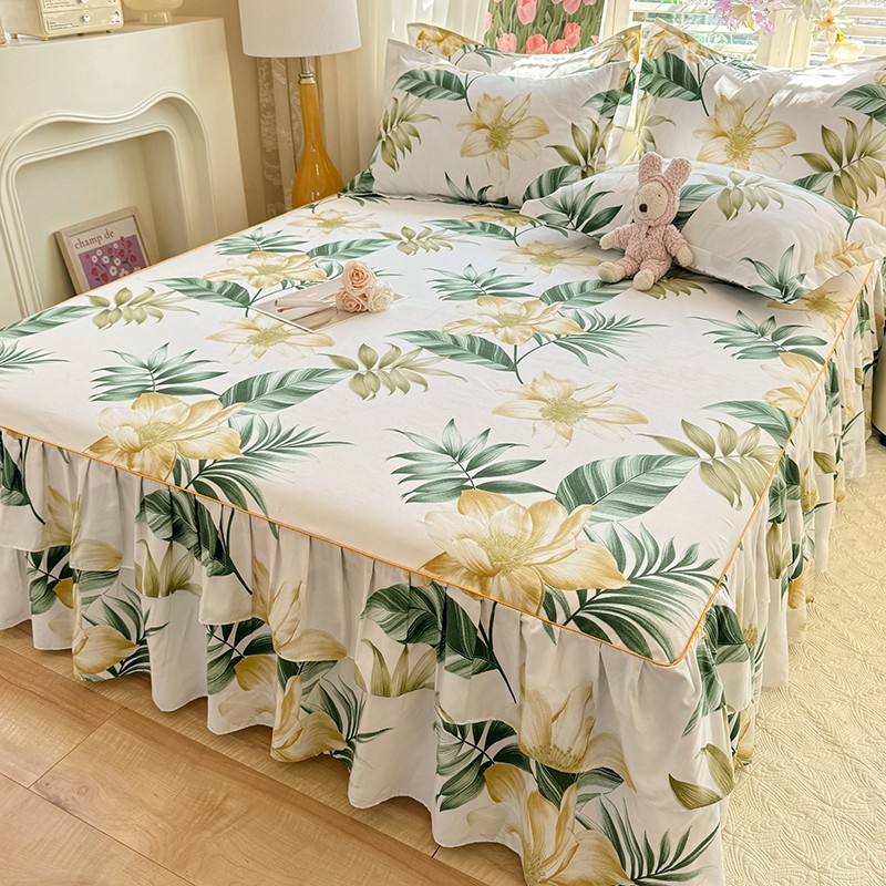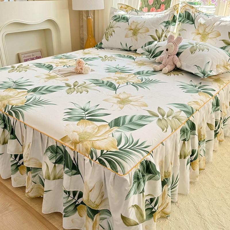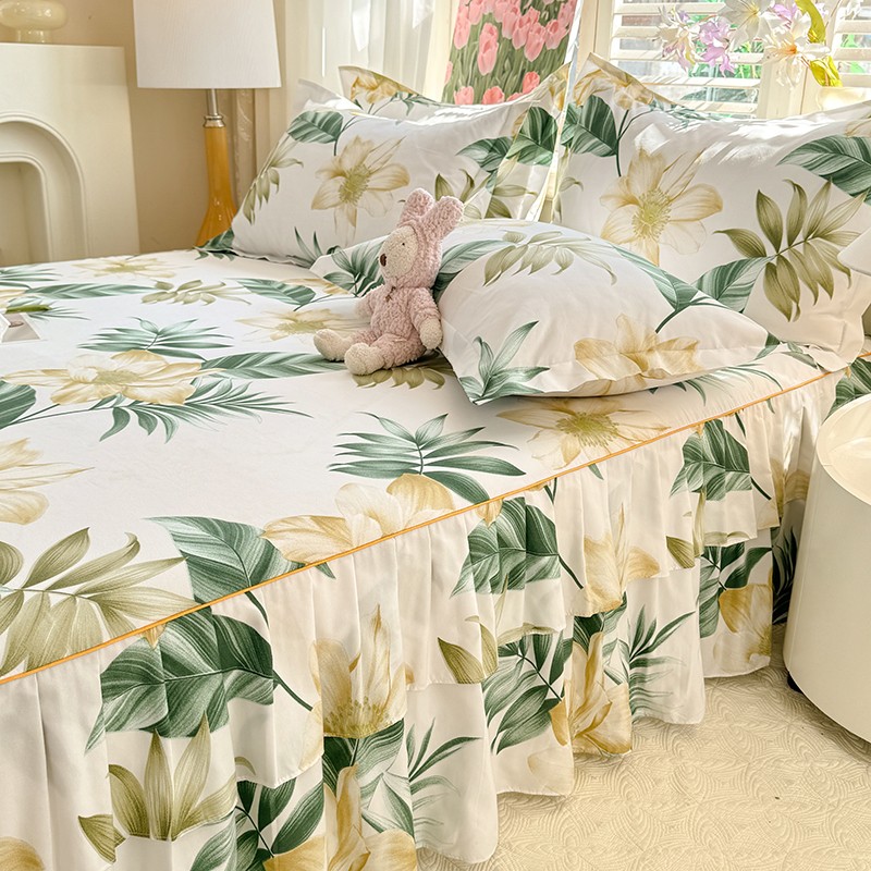 优家居 2025新款芦荟棉床裙三件套 热带雨林