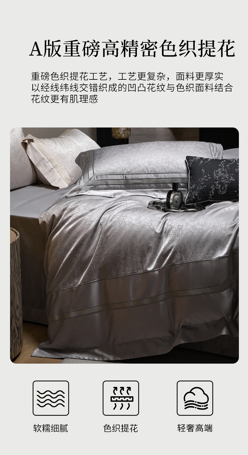 商品名称:淼铭家纺 2025新款高精密色织提花-巴塞罗系列 巴塞罗-灰