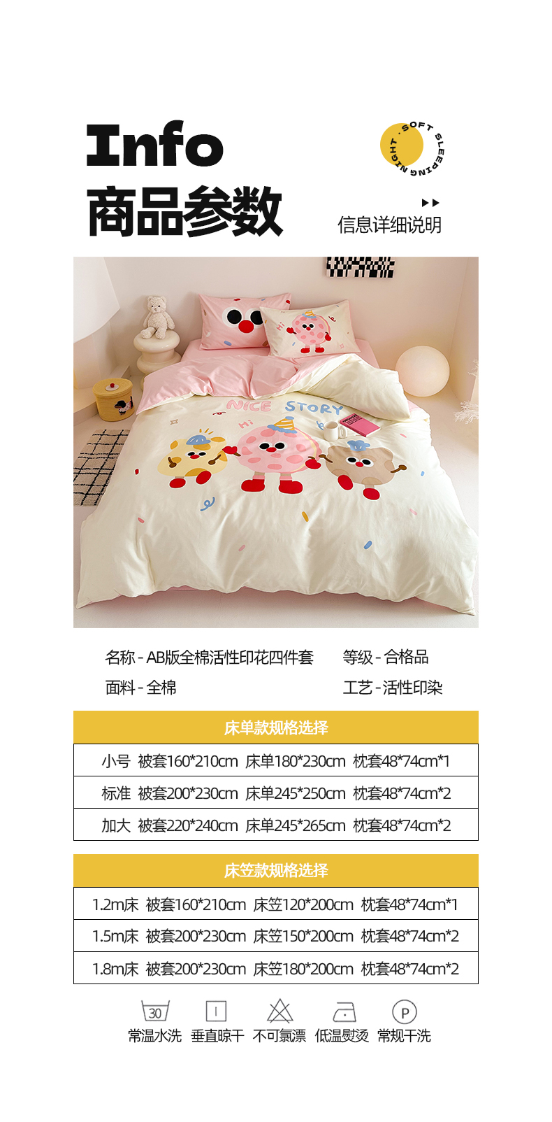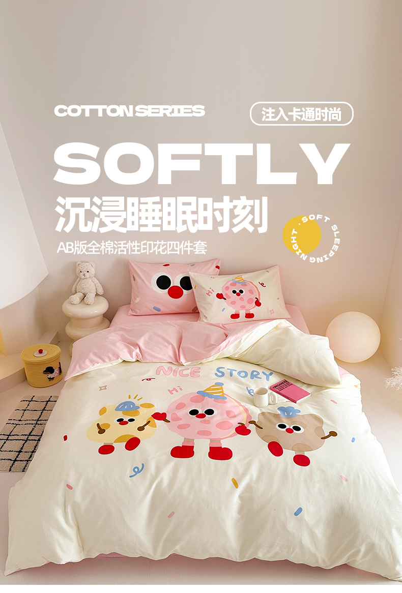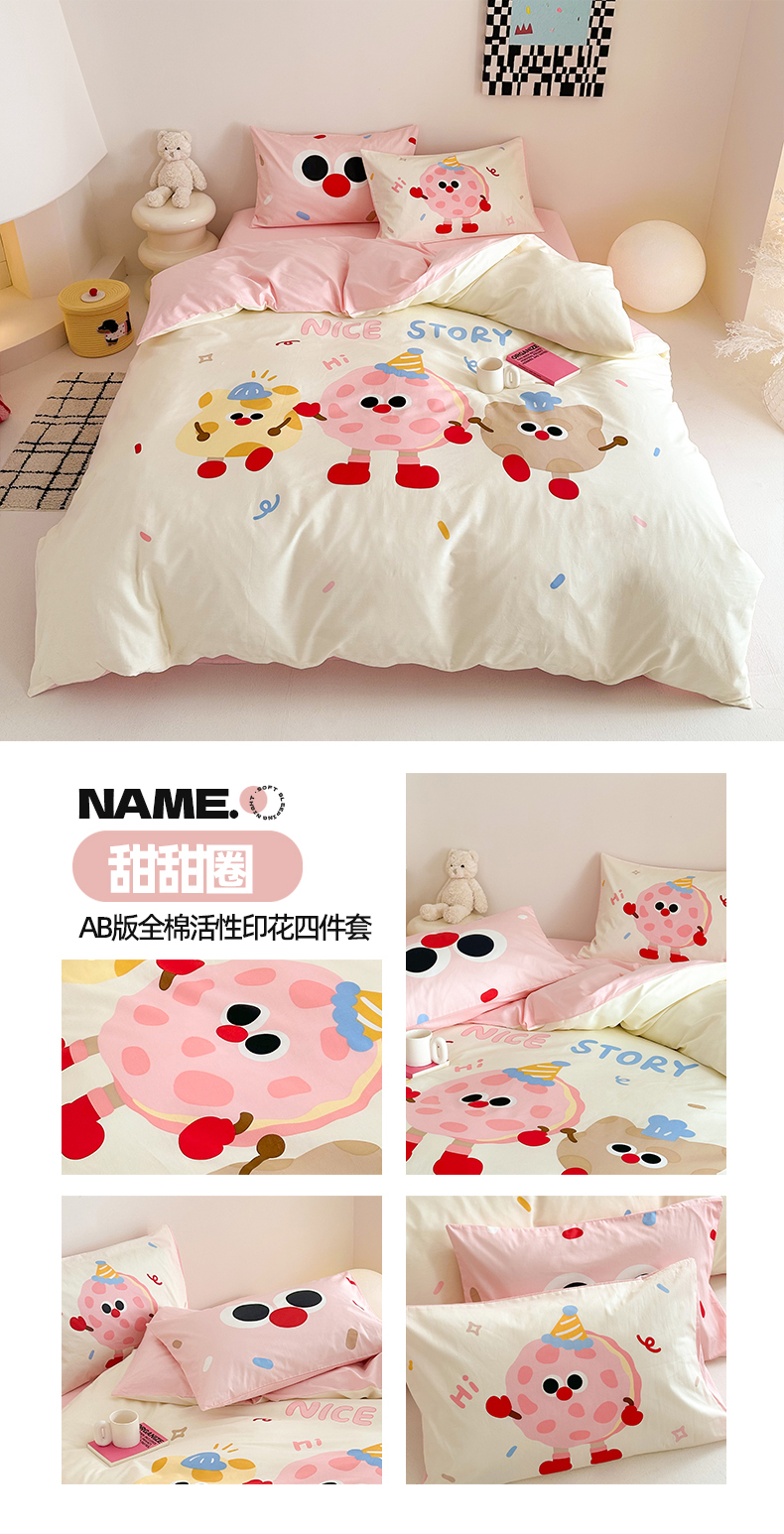 当前位置: 91家纺网 > 商品网购 > 床品套件 > 四件套 > 全棉普通四件套 > 2025新款全棉大版卡通数码印花纯棉四件套 甜甜圈