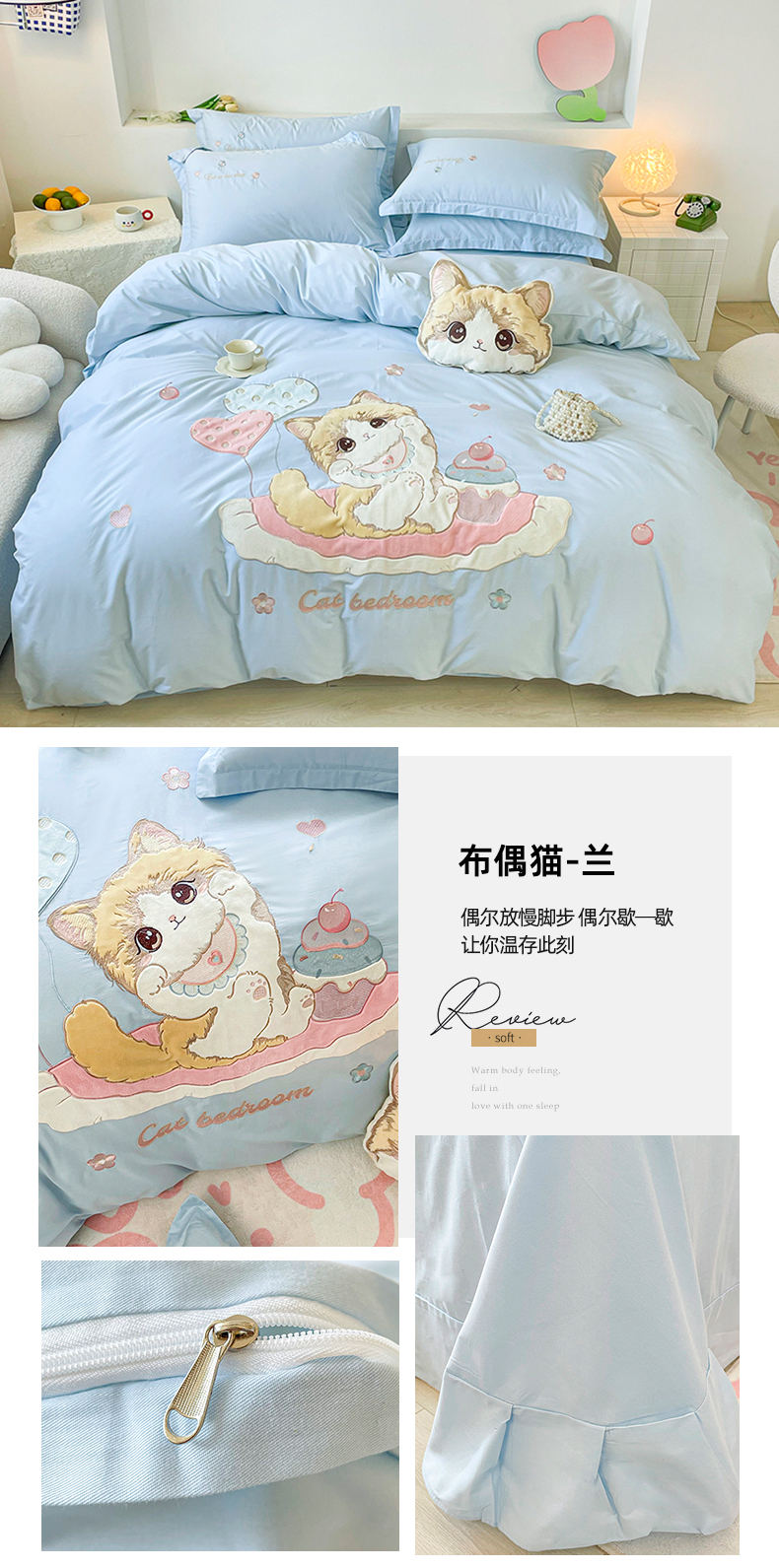 金绣美居 2025全棉大版卡通贴布绣 春夏新款四件套-布偶猫-兰