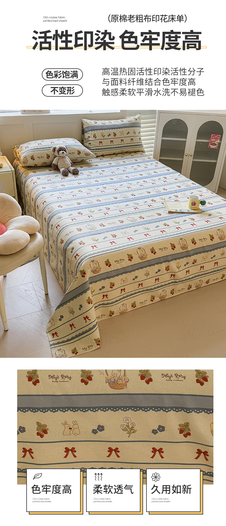 商品名称:(总)晓时候 2025原棉老粗布凉席床单凉席三件套软凉席子单床单