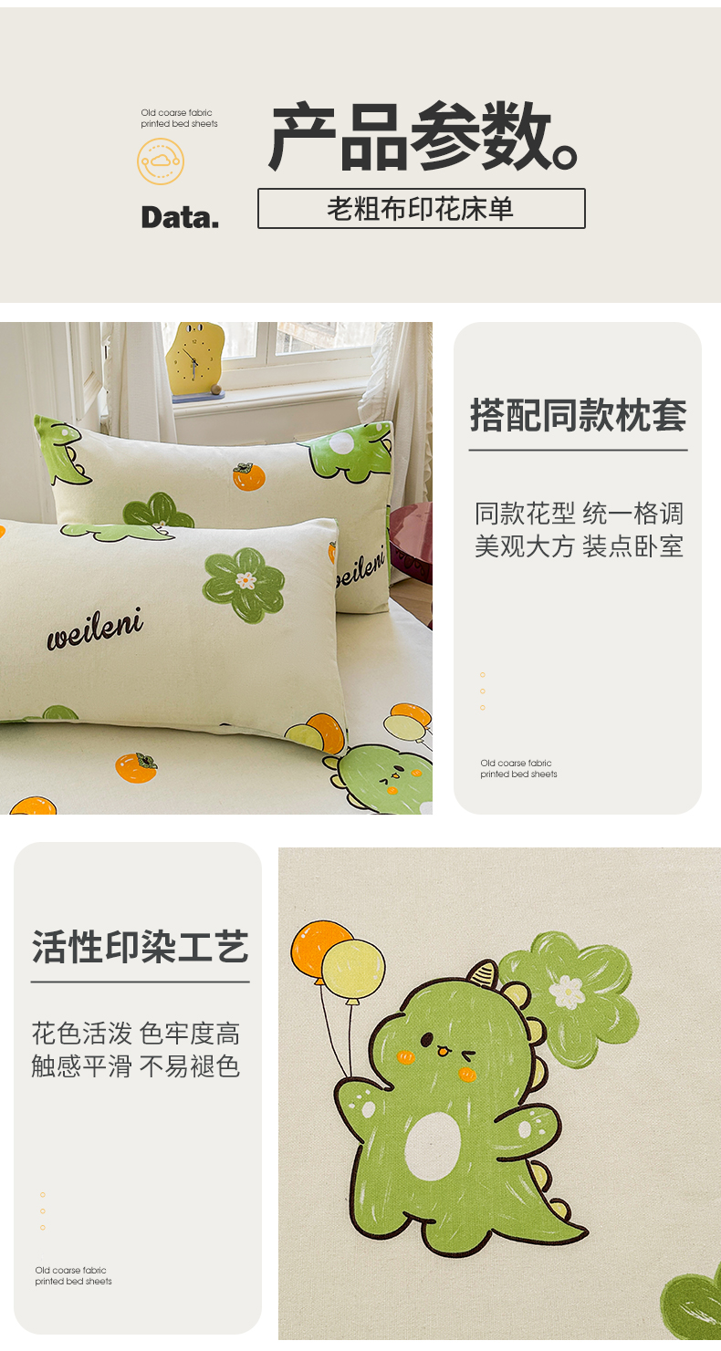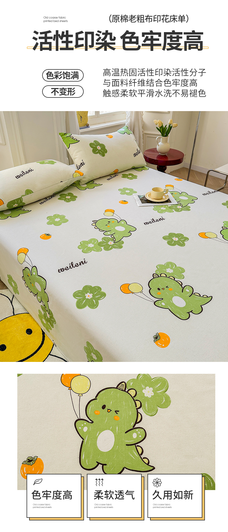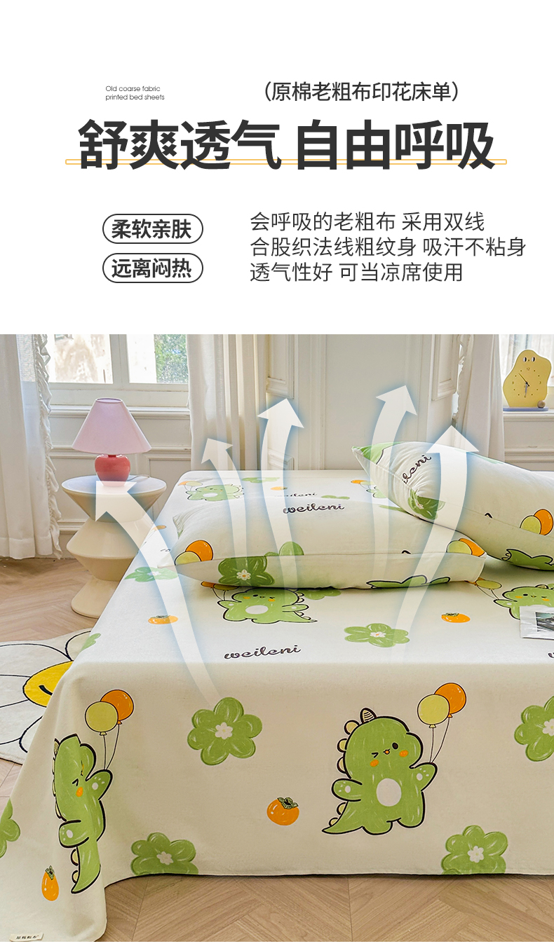 • 91家纺网 家纺一手货源 找家纺 晓时候 2025原棉老粗布床单凉席三件套软凉席子单床单 恐龙乐园